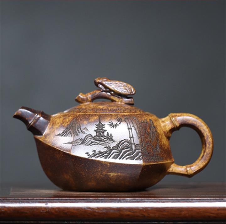8260cc原礦玄鐵石黃竹報平安泡茶壺POT850