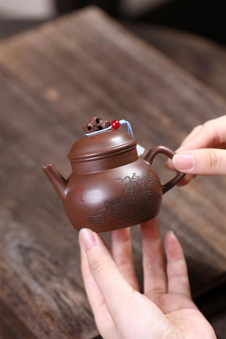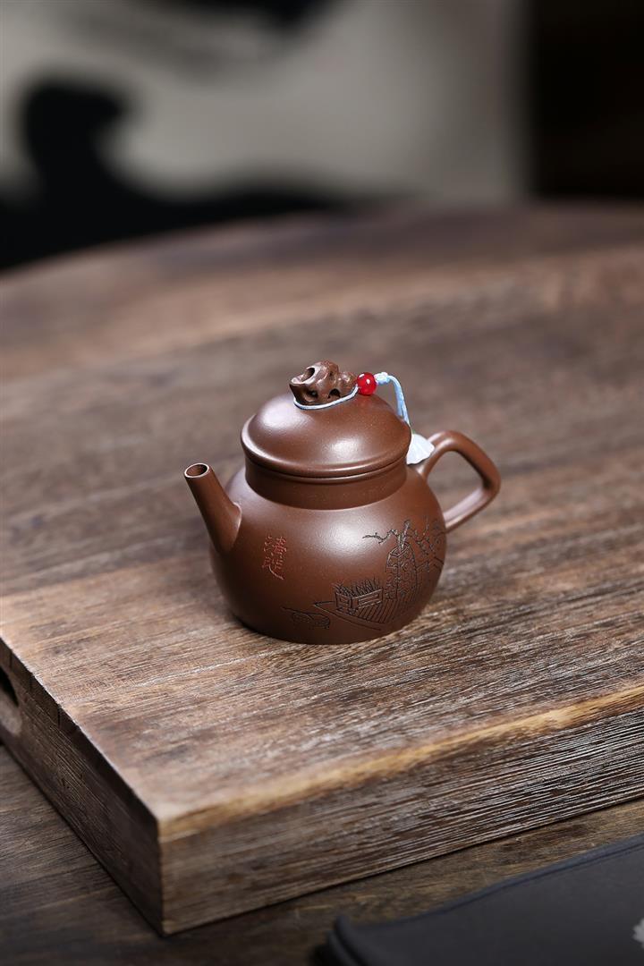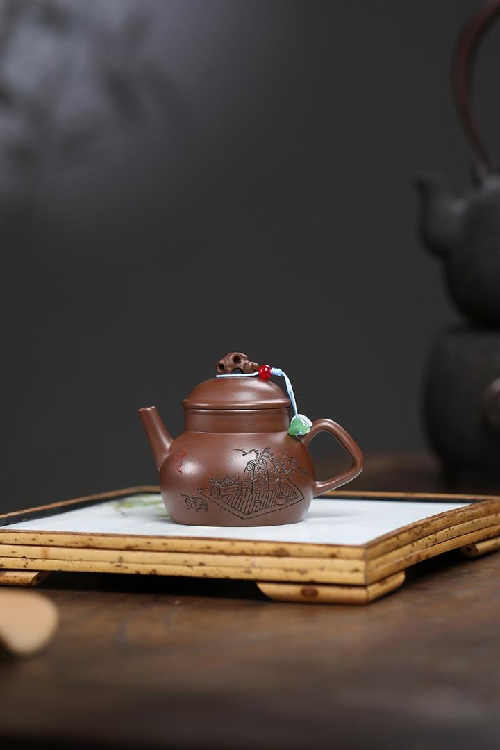 手工製原礦紫砂泥繪山水側把壺泡茶壺功夫茶具POT3915