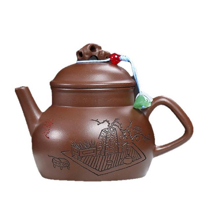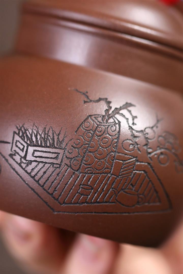 紫砂壺龍瑞祥獅全純手工刻繪原礦紫泥POT3917