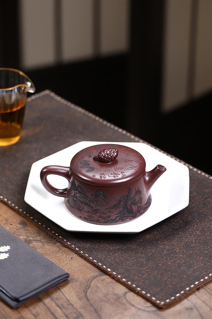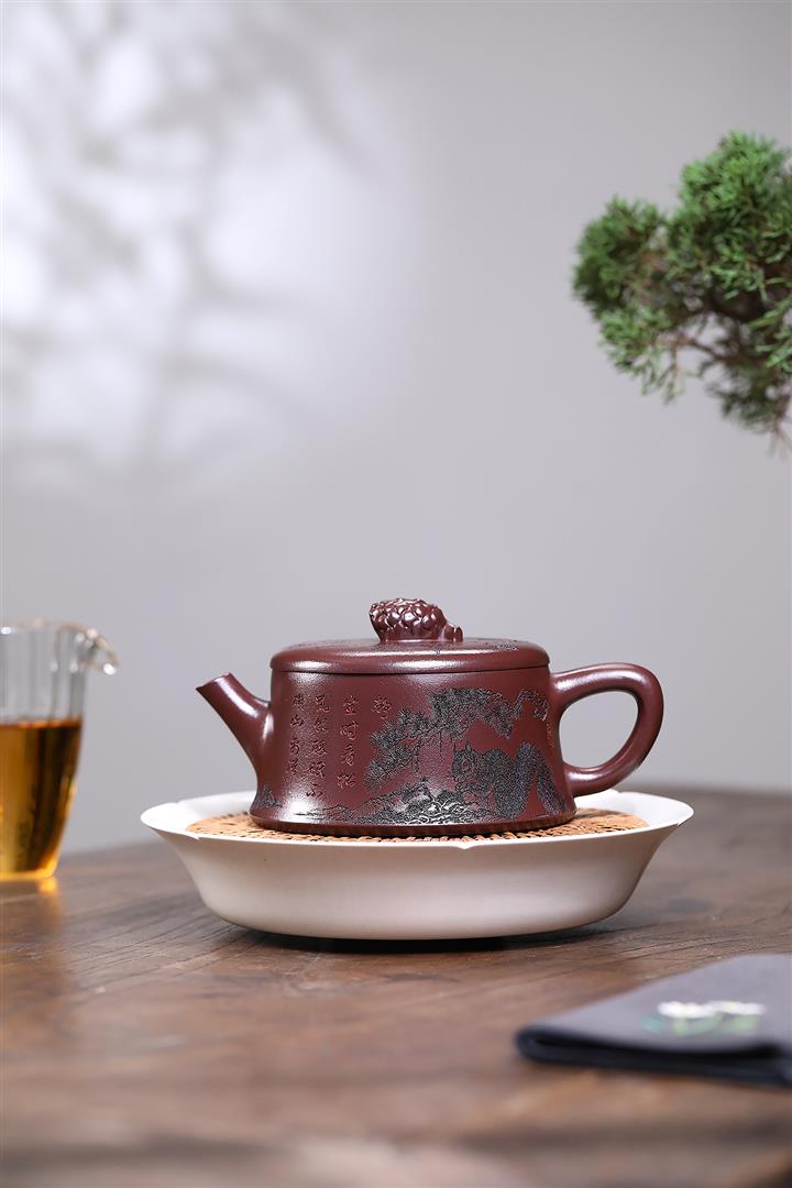 紫砂壺手工茶壺精美刻繪原礦龍背青巨輪珠功夫茶具pot3771