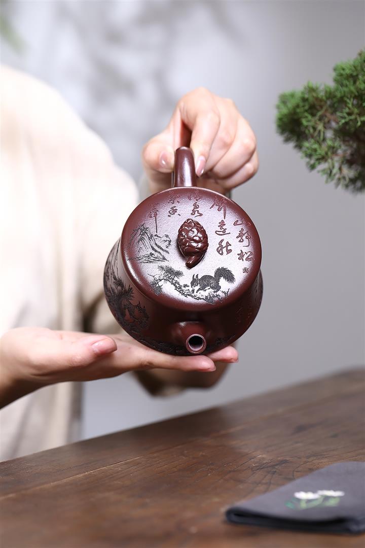 300老紫泥碩果累累松鼠漢瓦茶壺POT8071
