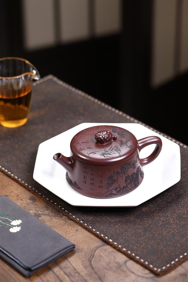 【泥料特點】砂土氣重,似淳實農民,日久使用,漸露鋒芒,養成變化,溫潤莊重。紫砂是壹種雙重氣孔結構的多孔性材質,氣孔微細,密度高。用紫砂壺沏茶,不失原味,且香不渙散,得茶之真香真味。紫砂使用越久,壺身色澤越發光亮照人,氣韻溫雅。紫砂壺長久使用器身會因撫摸擦拭,變得越發溫潤光澤。