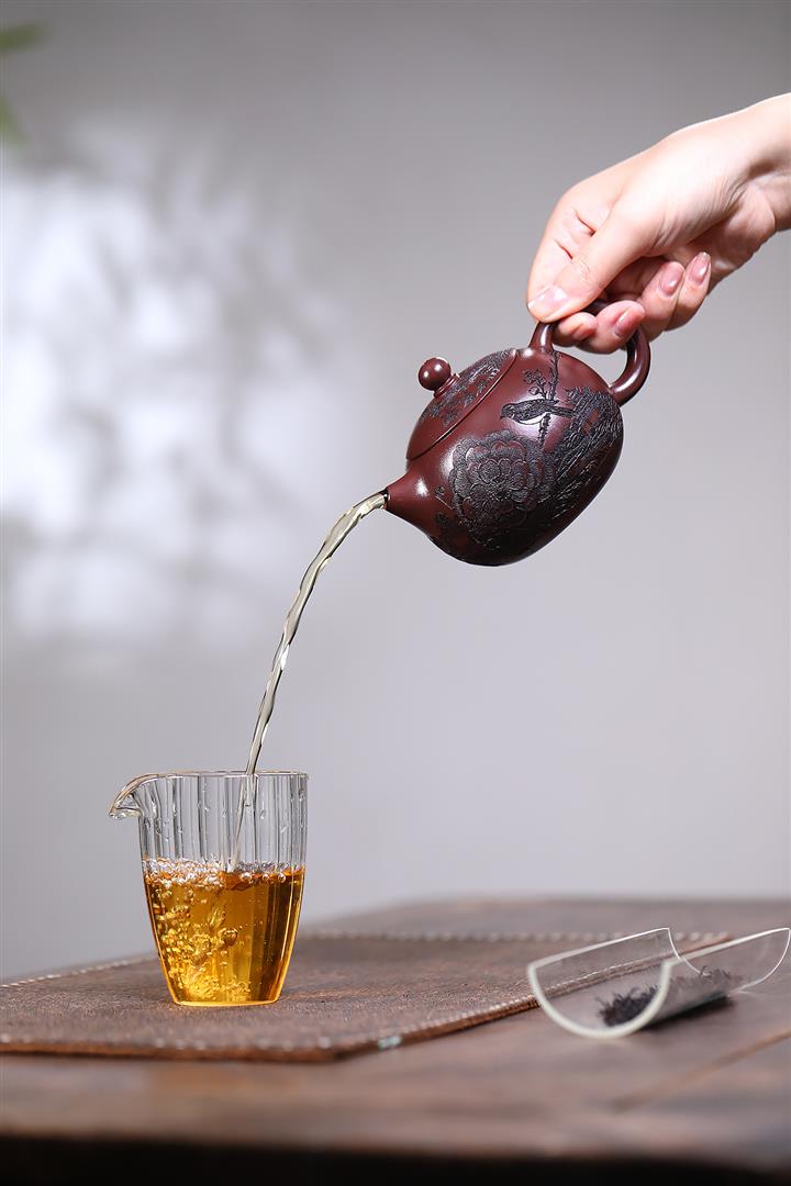 【泥料特點】砂土氣重,似淳實農民,日久使用,漸露鋒芒,養成變化,溫潤莊重。紫砂是壹種雙重氣孔結構的多孔性材質,氣孔微細,密度高。用紫砂壺沏茶,不失原味,且香不渙散,得茶之真香真味。紫砂使用越久,壺身色澤越發光亮照人,氣韻溫雅。紫砂壺長久使用器身會因撫摸擦拭,變得越發溫潤光澤。