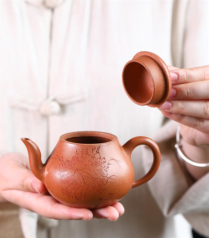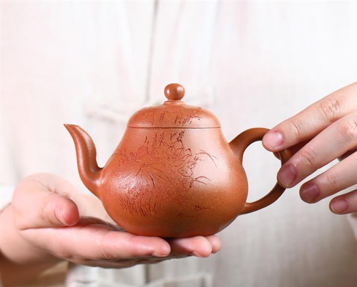 【泥料特點】砂土氣重,似淳實農民,日久使用,漸露鋒芒,養成變化,溫潤莊重。紫砂是壹種雙重氣孔結構的多孔性材質,氣孔微細,密度高。用紫砂壺沏茶,不失原味,且香不渙散,得茶之真香真味。紫砂使用越久,壺身色澤越發光亮照人,氣韻溫雅。紫砂壺長久使用器身會因撫摸擦拭,變得越發溫潤光澤。