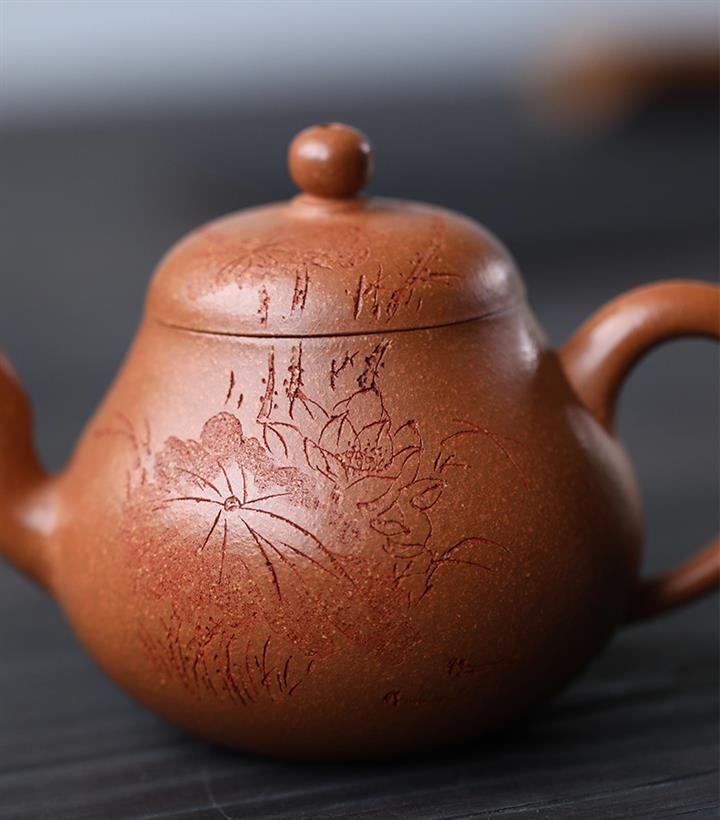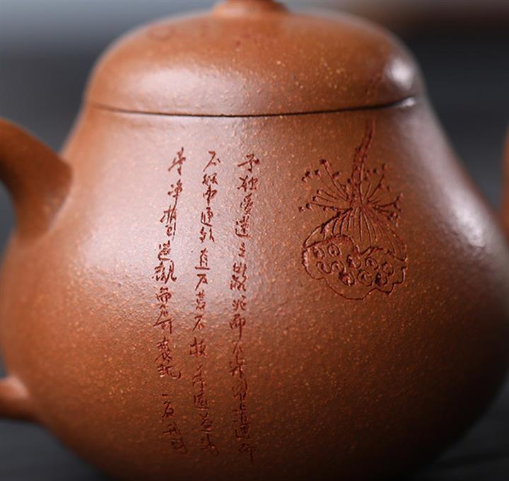德鐘原礦豆沙青手工琢砂刻畫POT4231