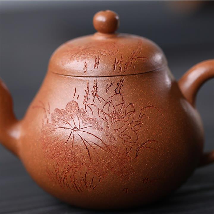 170cc原礦黃降坡泥荷葉蓮蓬梨形茶壺POT8077
