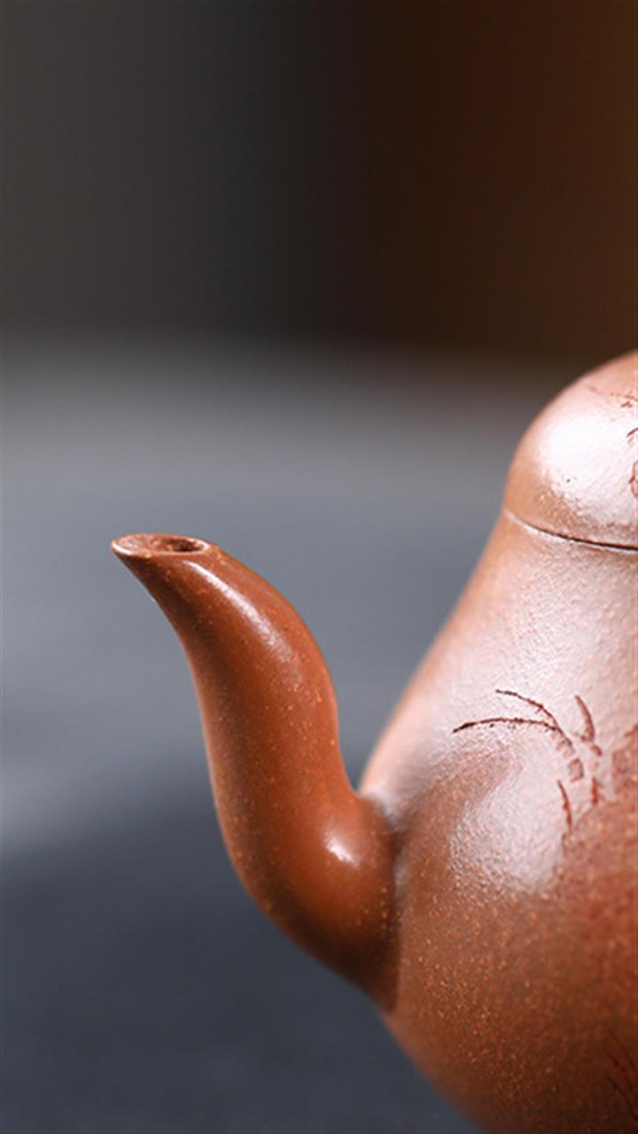 【作品介紹】此款壺形線條流暢,壺把,壺嘴,壺身壹氣呵成栩栩如生,是收藏把玩的好壺,泥料色澤古樸典雅,日久使用,漸露鋒芒,養成變化快,溫潤莊重,用其泡茶,使用的年代久,壺身就溫潤,泡出來的茶湯也就醇郁芳馨。