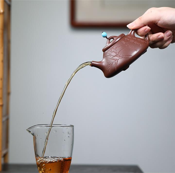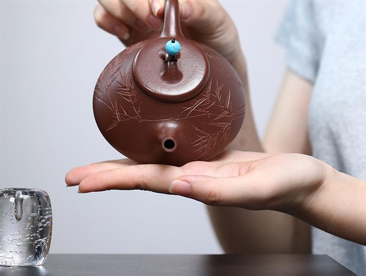 【泥料特點】砂土氣重,似淳實農民,日久使用,漸露鋒芒,養成變化,溫潤莊重。紫砂是壹種雙重氣孔結構的多孔性材質,氣孔微細,密度高。用紫砂壺沏茶,不失原味,且香不渙散,得茶之真香真味。紫砂使用越久,壺身色澤越發光亮照人,氣韻溫雅。紫砂壺長久使用器身會因撫摸擦拭,變得越發溫潤光澤。
