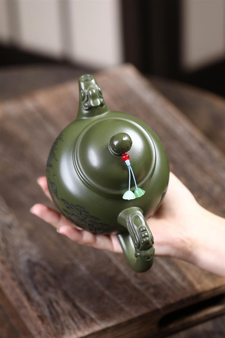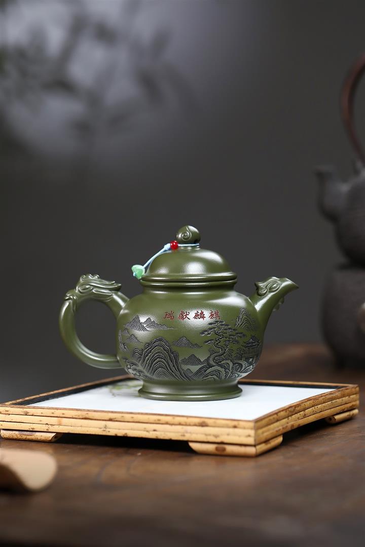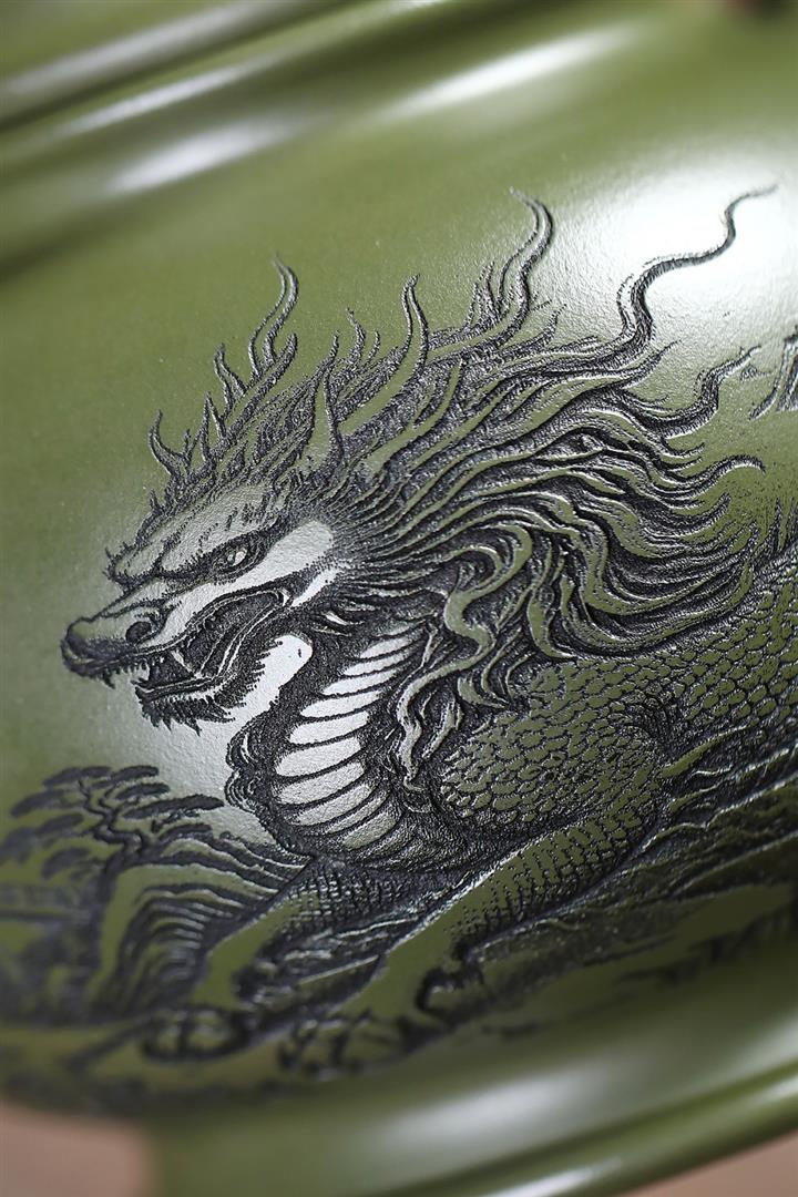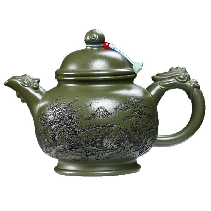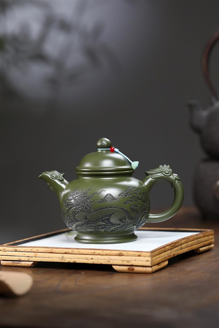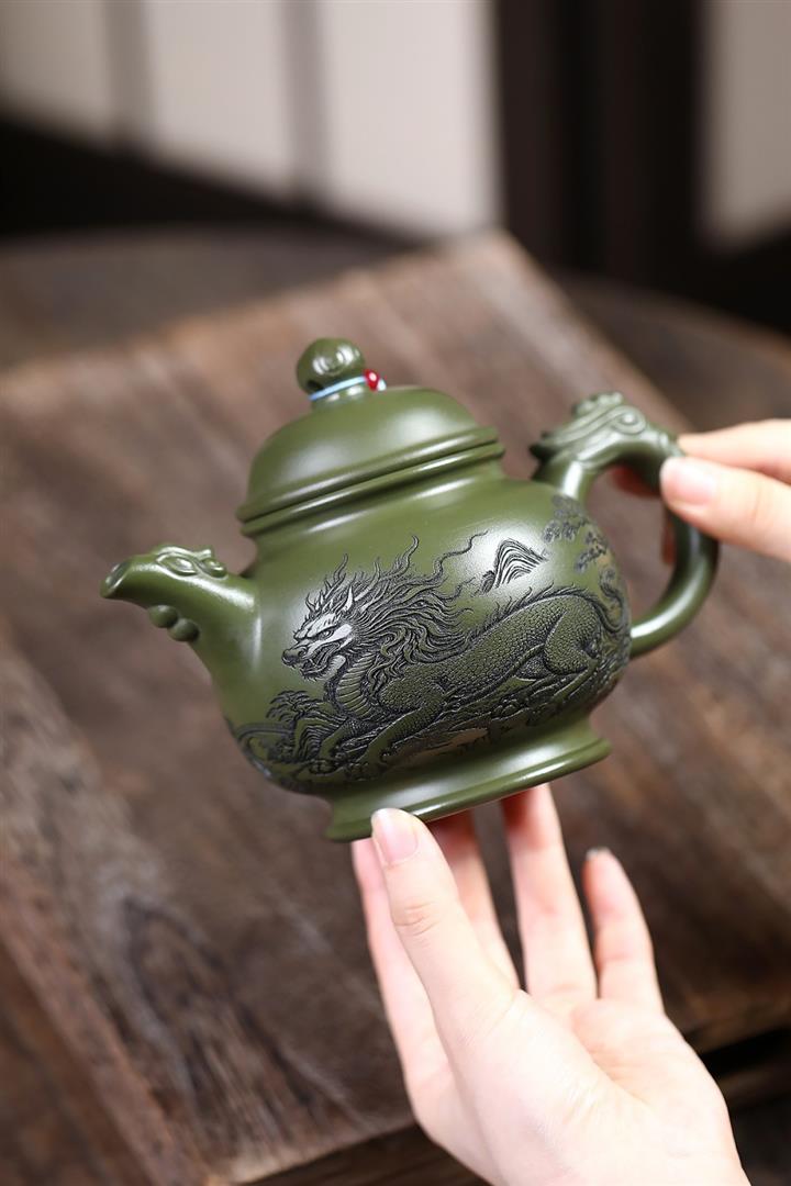 460cc原礦綠泥滿刻麒麟威風茶壺POT8079