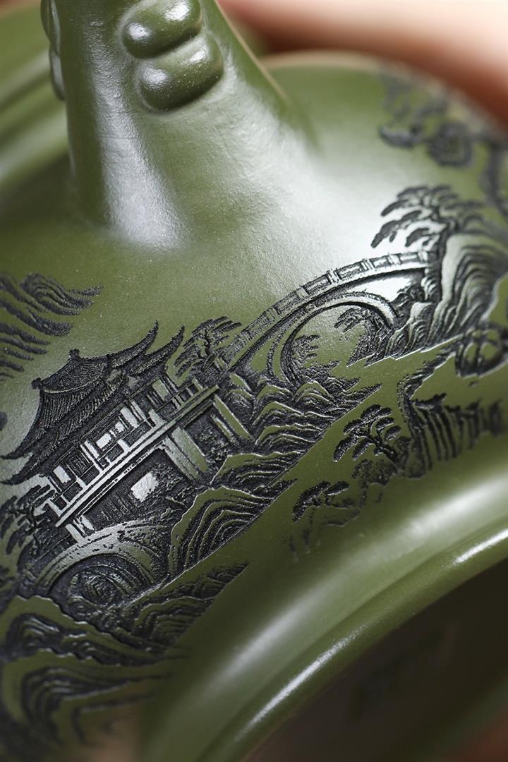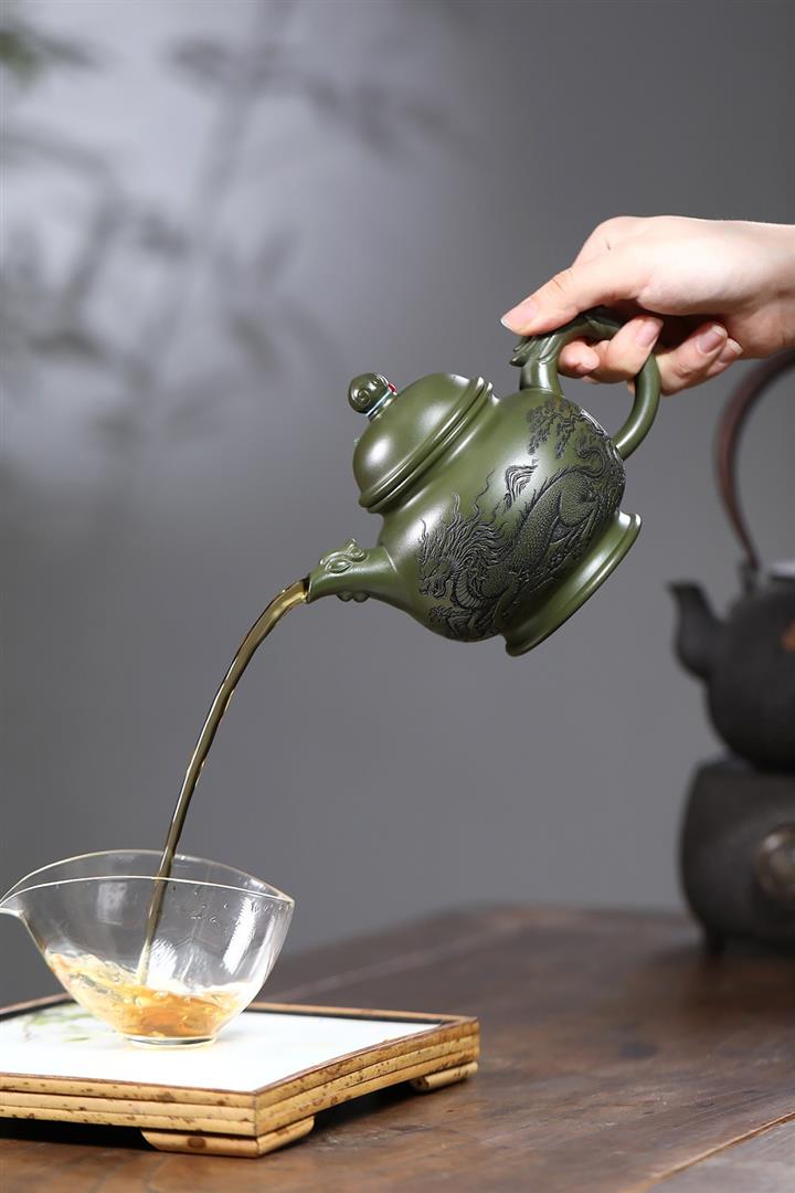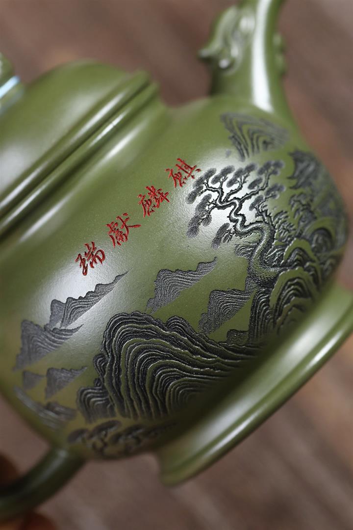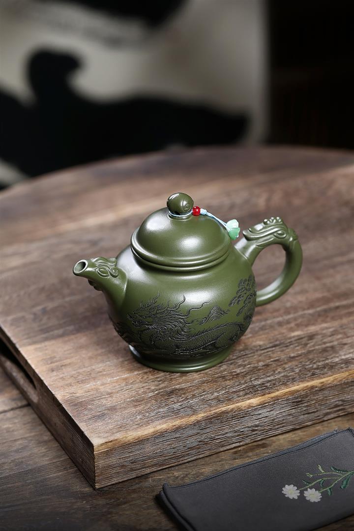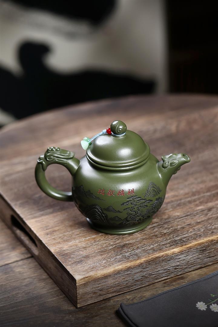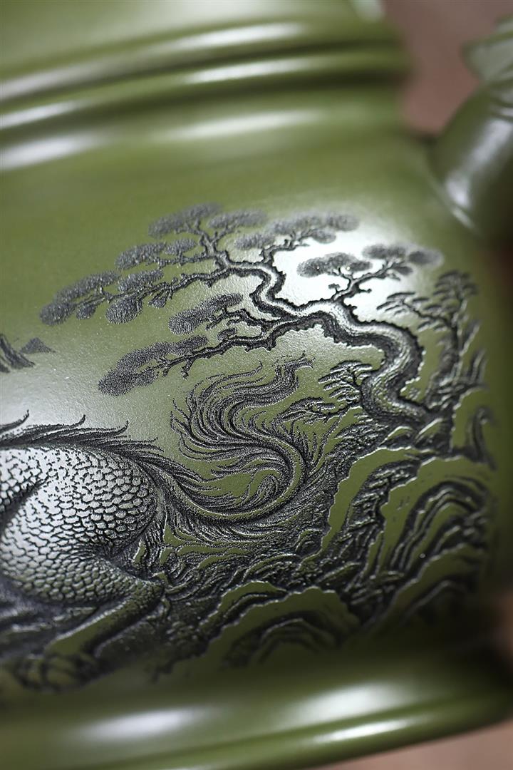 460cc原礦綠泥滿刻麒麟威風茶壺POT8079