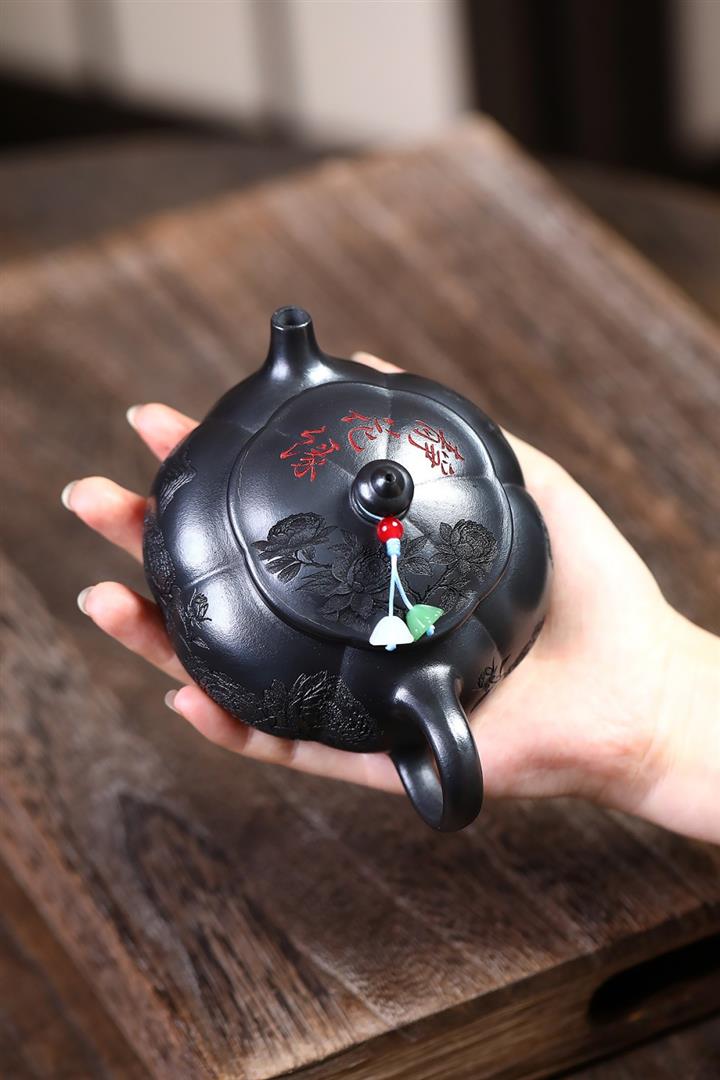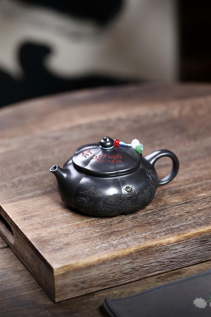 原礦大紅袍焐灰吉祥如意茶壺POT7039