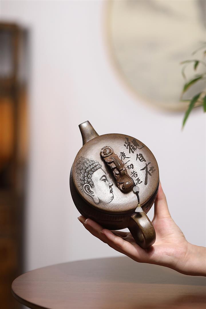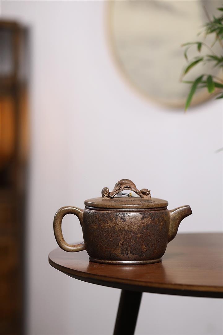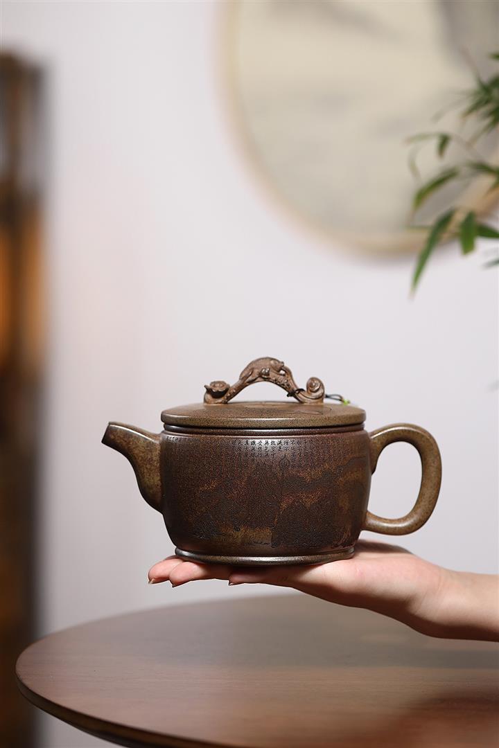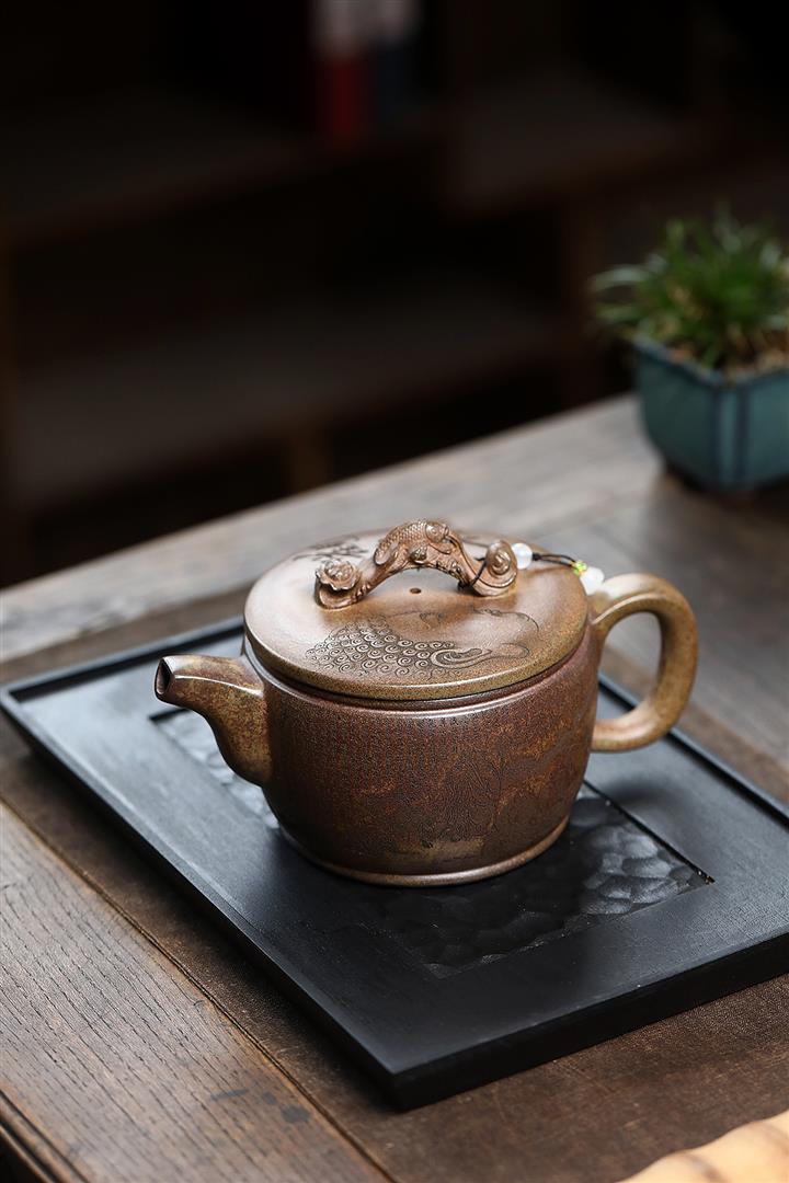620cc原礦沈香泥龍窯柴燒如意漢瓦茶壺POT8083