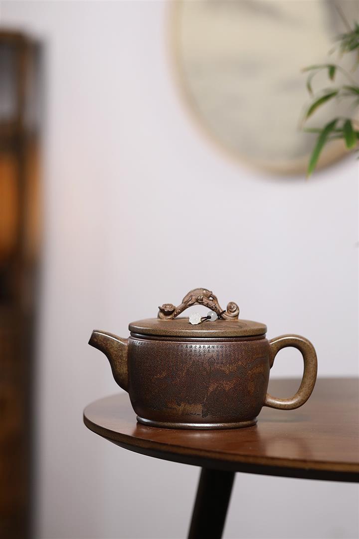 大口明爐原礦黃金段手刻紫砂壺pot3886