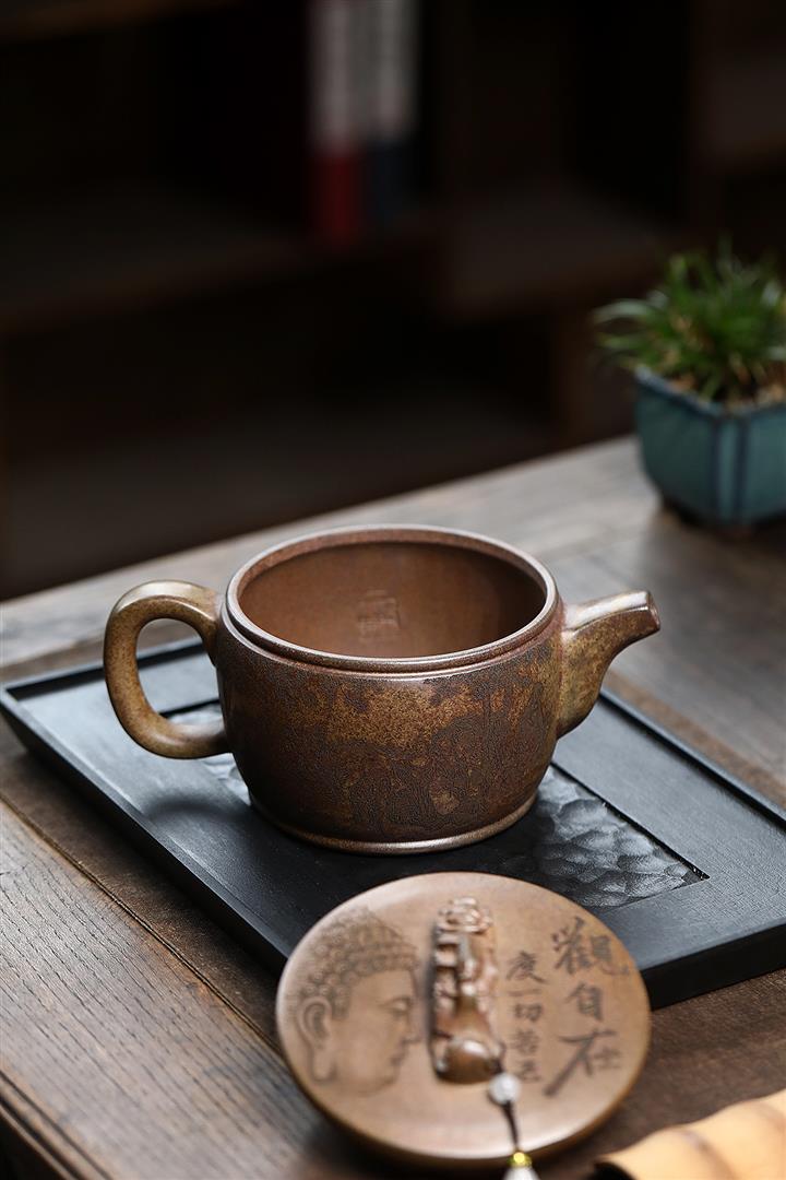原礦段泥手工超薄胎平蓋古風漢瓦壺紫砂壺100cc pot3737