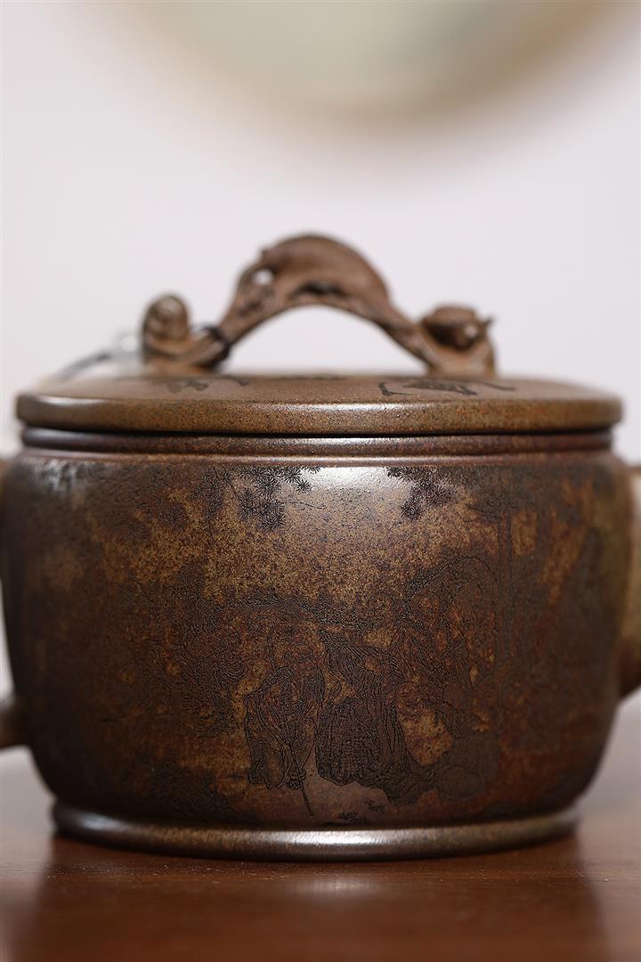大口暢遊江湖原礦紫泥手刻紫砂壺pot3884
