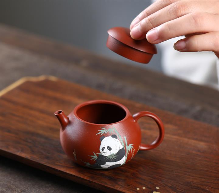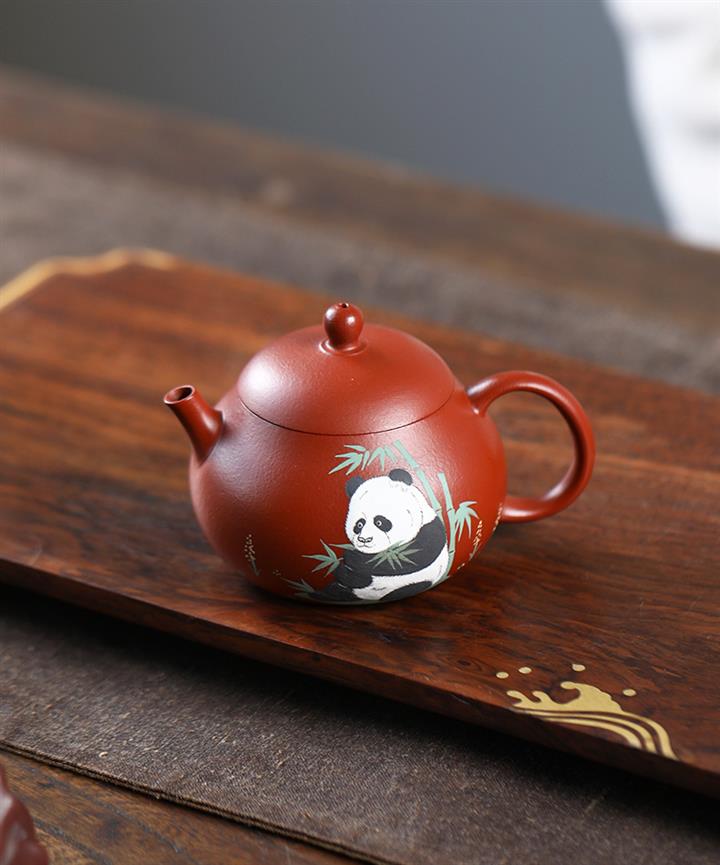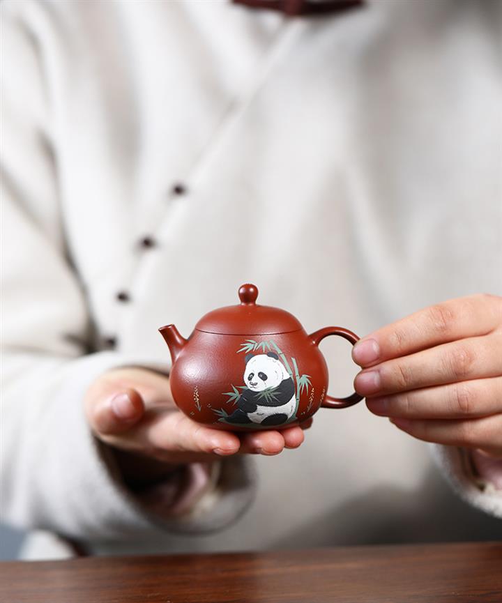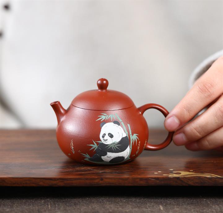 120cc原礦朱泥熊貓小西施茶壺POT8104