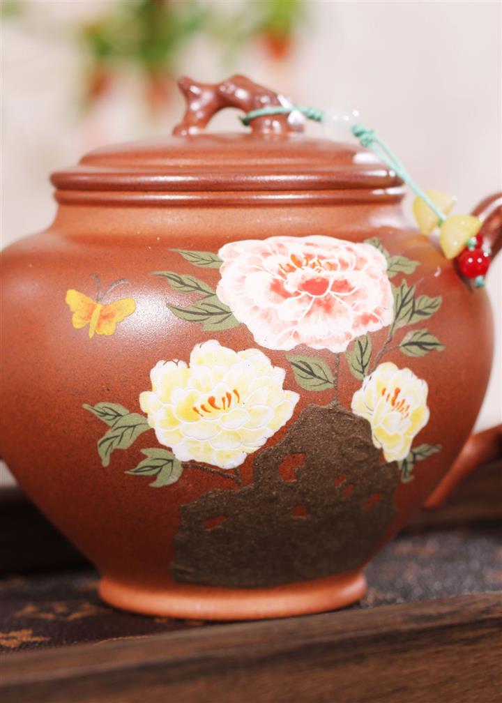原礦降坡泥無塵手工花鳥茶壺POT6605