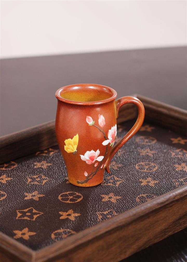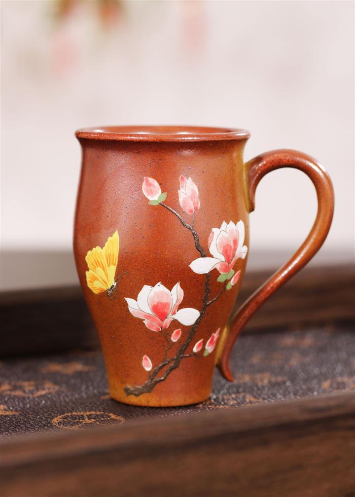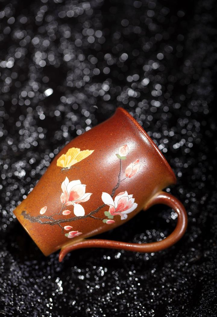 原礦紫砂手工刻繪花開富貴茶杯POT6614