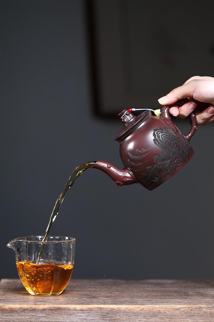 【作品介紹】此款壺形線條流暢,壺把,壺嘴,壺身壹氣呵成栩栩如生,是收藏把玩的好壺,泥料色澤古樸典雅,日久使用,漸露鋒芒,養成變化快,溫潤莊重,用其泡茶,使用的年代久,壺身就溫潤,泡出來的茶湯也就醇郁芳馨。