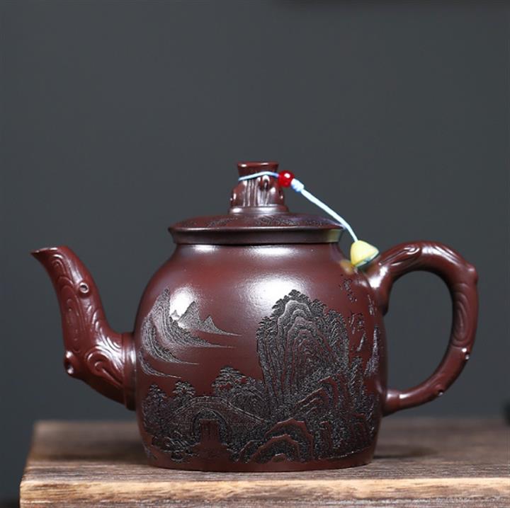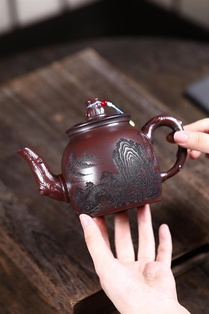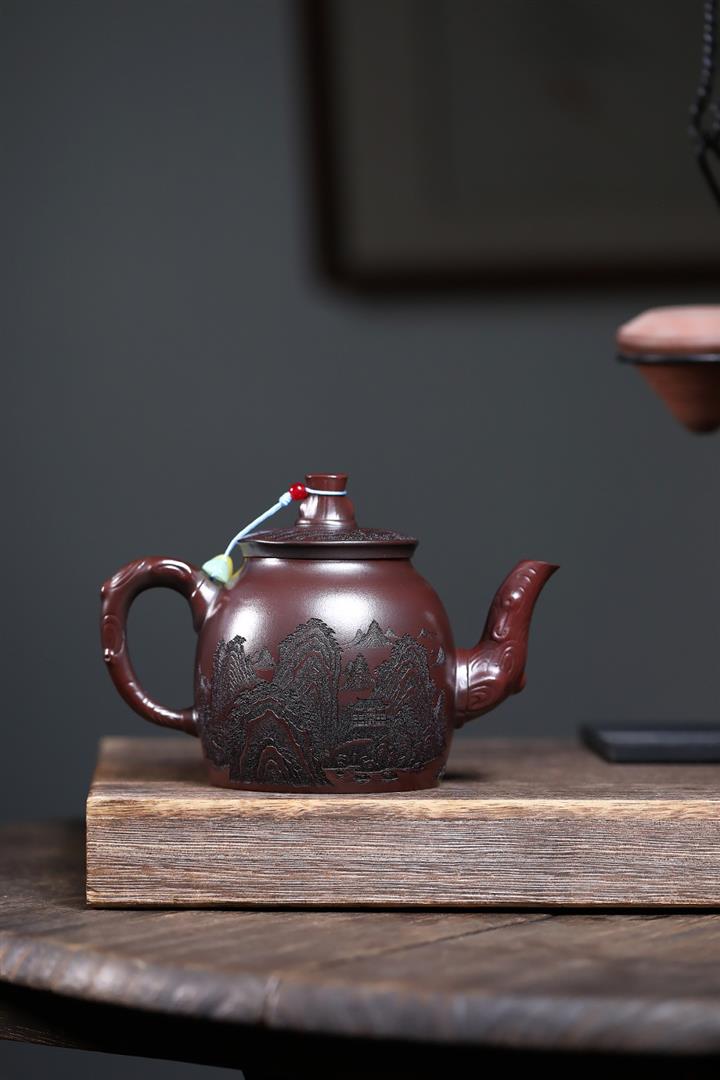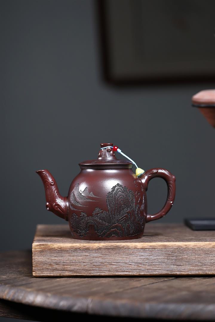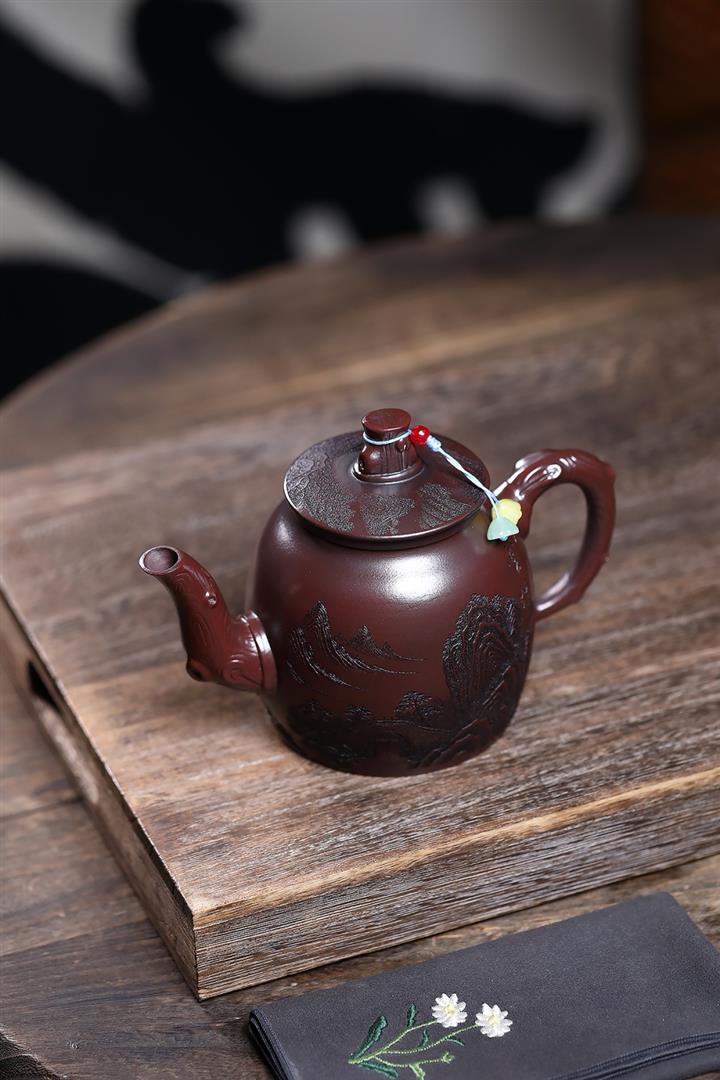 450cc原礦古烏泥滿刻淩雲問樵壺POT8157