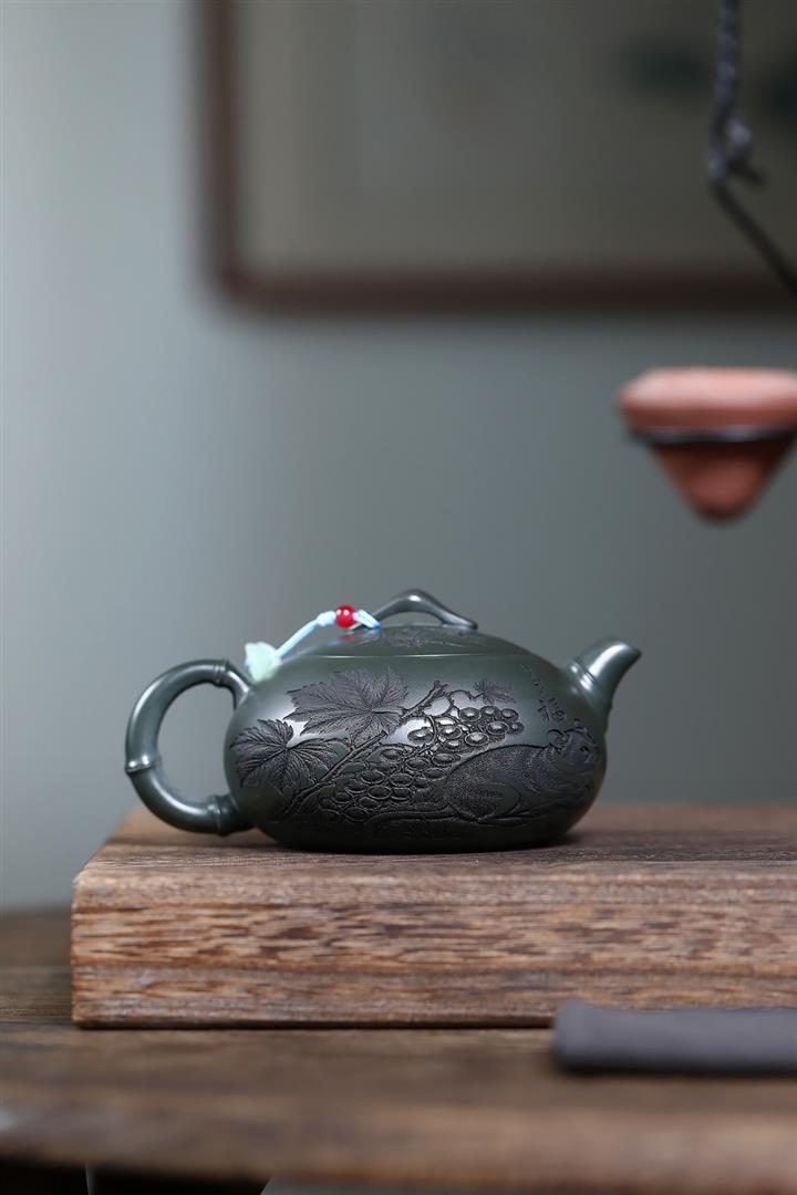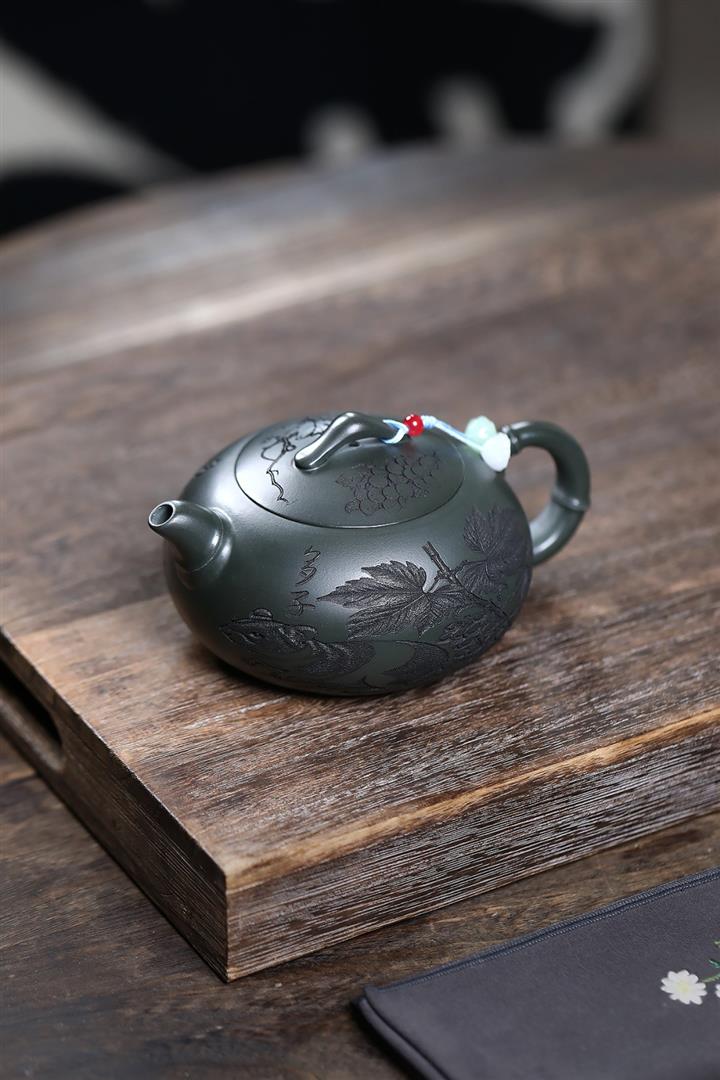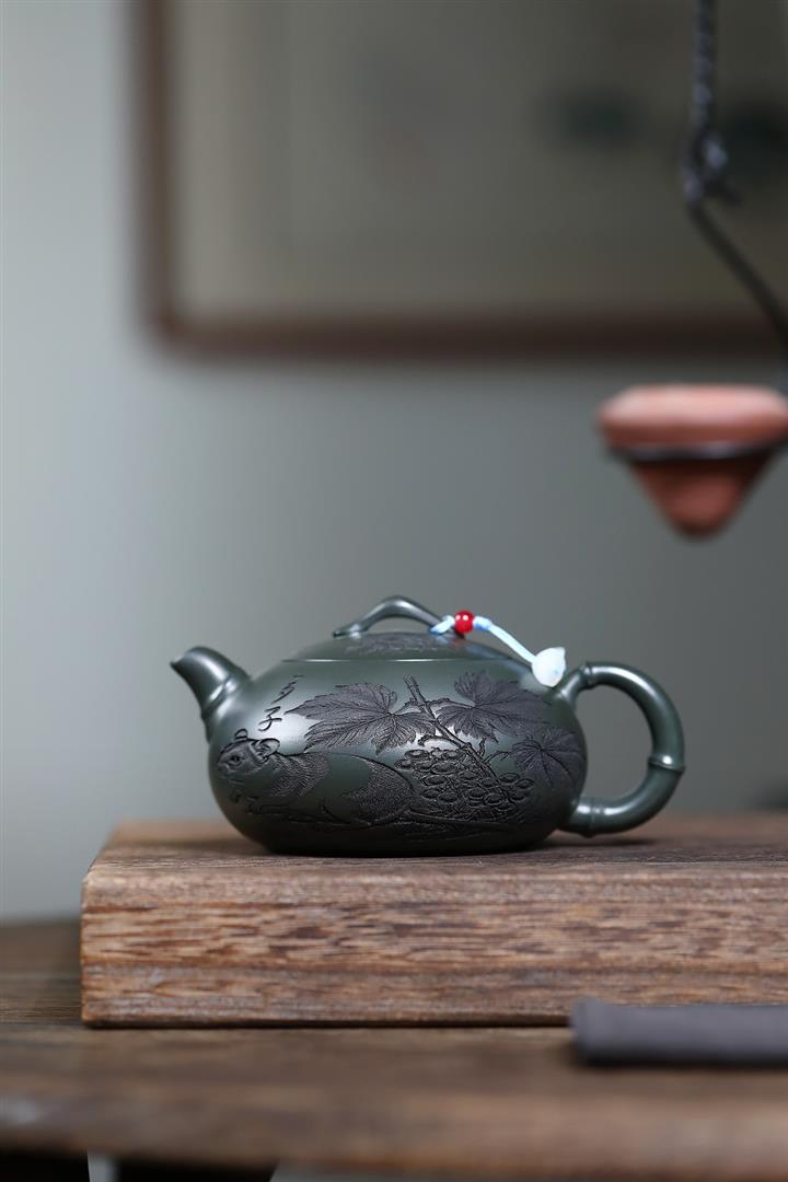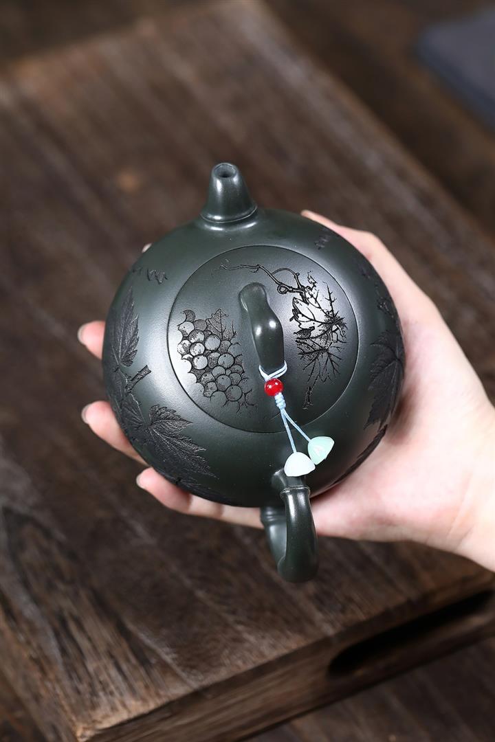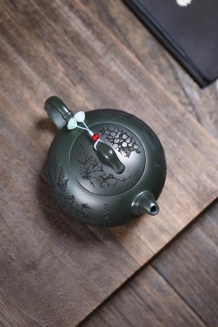 320cc原礦綠泥滿刻秋實秋趣茶壺POT8168