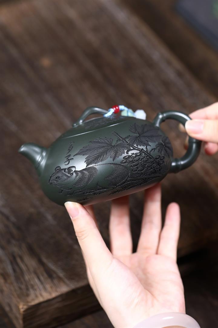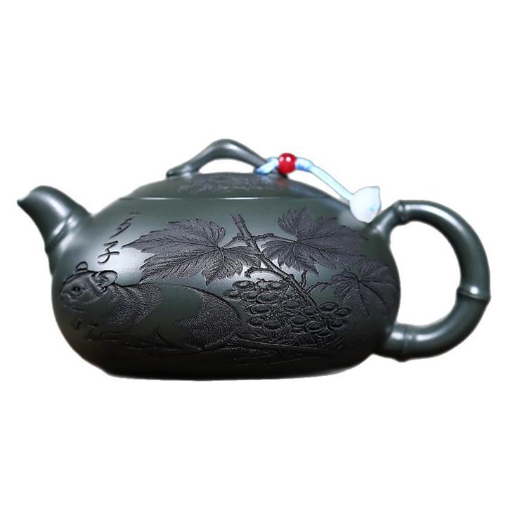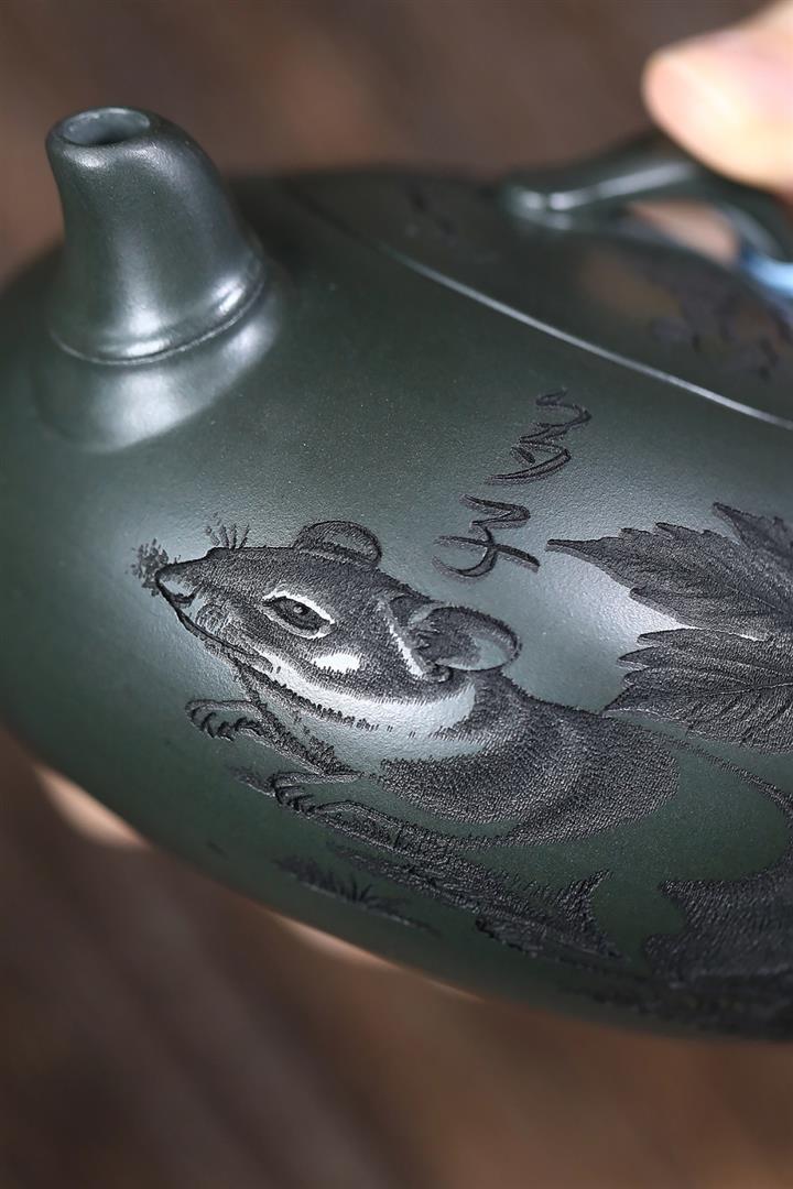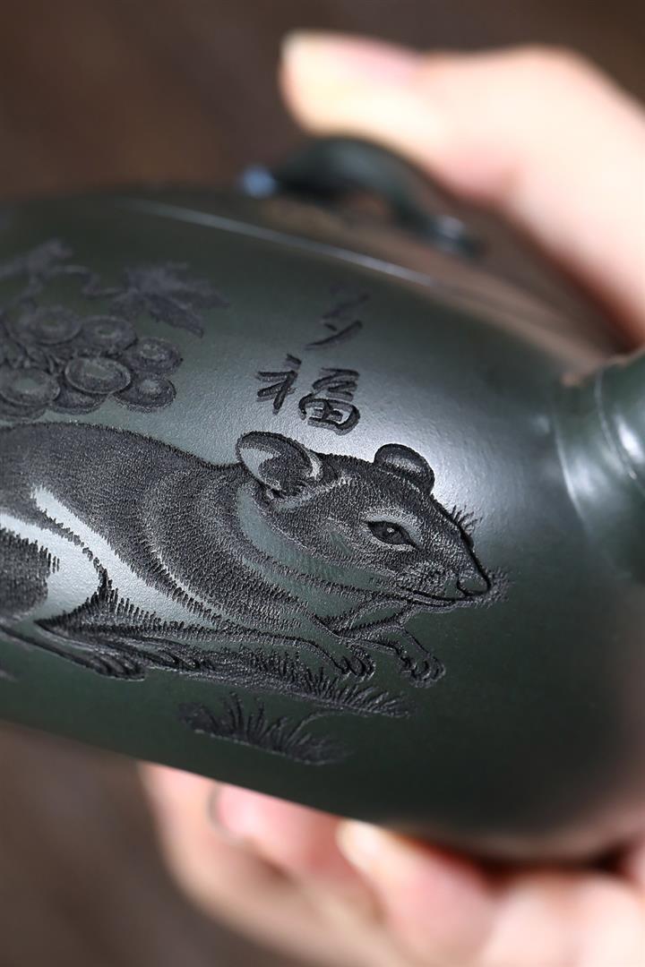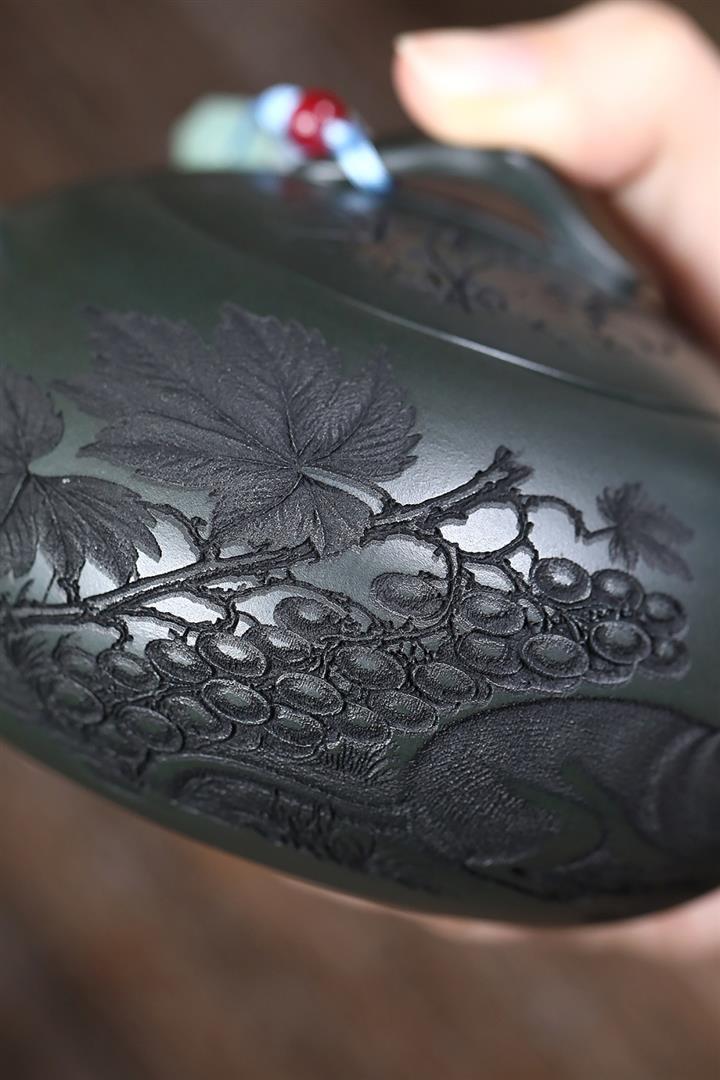 320cc原礦綠泥滿刻秋實秋趣茶壺POT8168