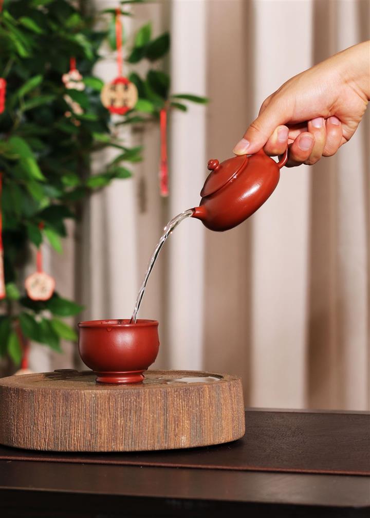 【泥料特點】砂土氣重,似淳實農民,日久使用,漸露鋒芒,養成變化,溫潤莊重。紫砂是壹種雙重氣孔結構的多孔性材質,氣孔微細,密度高。用紫砂壺沏茶,不失原味,且香不渙散,得茶之真香真味。紫砂使用越久,壺身色澤越發光亮照人,氣韻溫雅。紫砂壺長久使用器身會因撫摸擦拭,變得越發溫潤光澤。