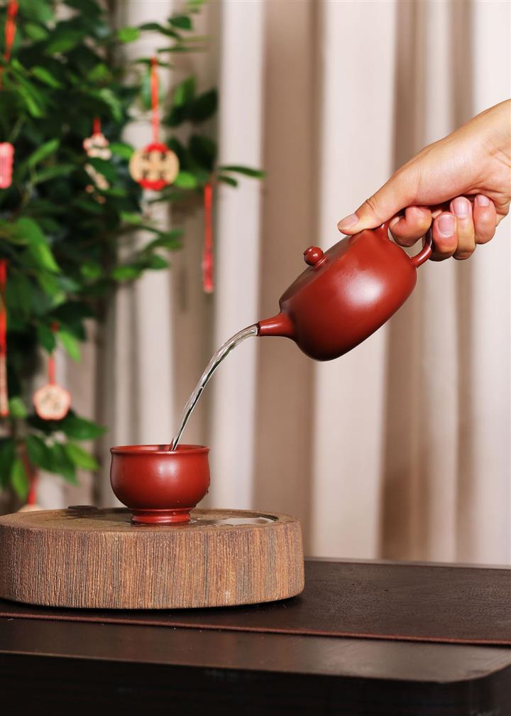 【泥料特點】砂土氣重,似淳實農民,日久使用,漸露鋒芒,養成變化,溫潤莊重。紫砂是壹種雙重氣孔結構的多孔性材質,氣孔微細,密度高。用紫砂壺沏茶,不失原味,且香不渙散,得茶之真香真味。紫砂使用越久,壺身色澤越發光亮照人,氣韻溫雅。紫砂壺長久使用器身會因撫摸擦拭,變得越發溫潤光澤。