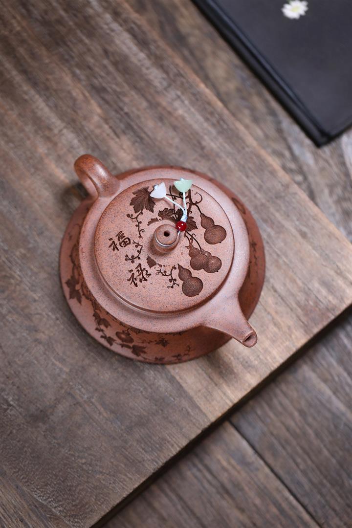 180cc原礦石黃泥逸瓢刻繪茶壺POT8361