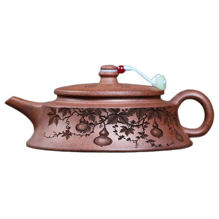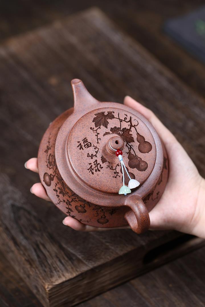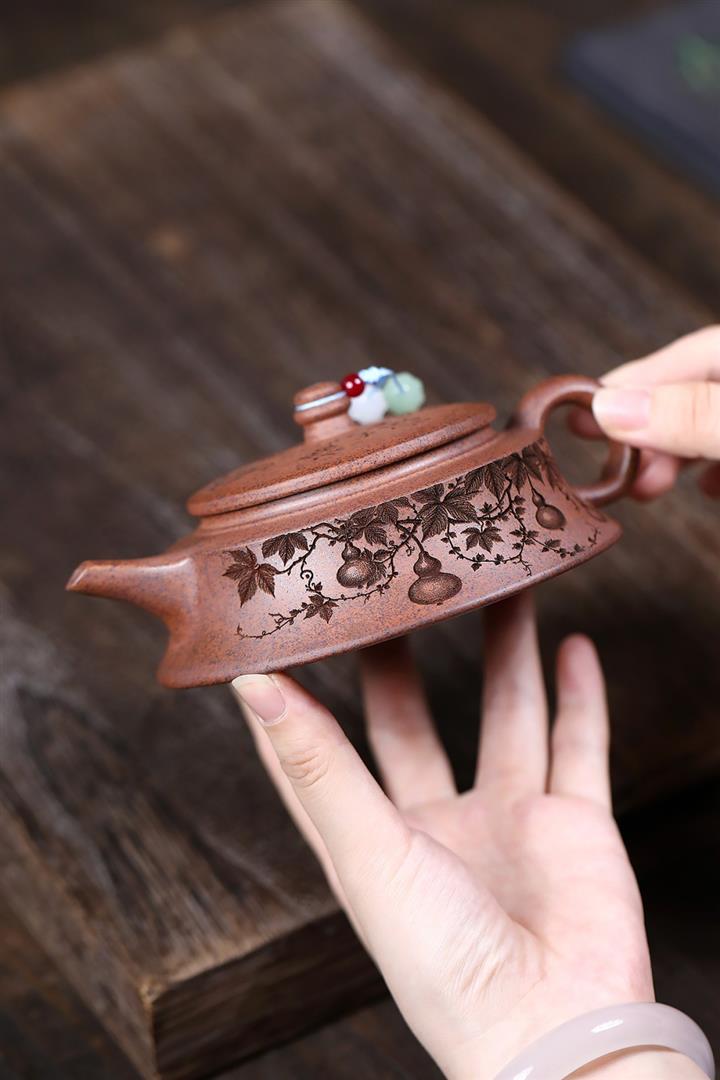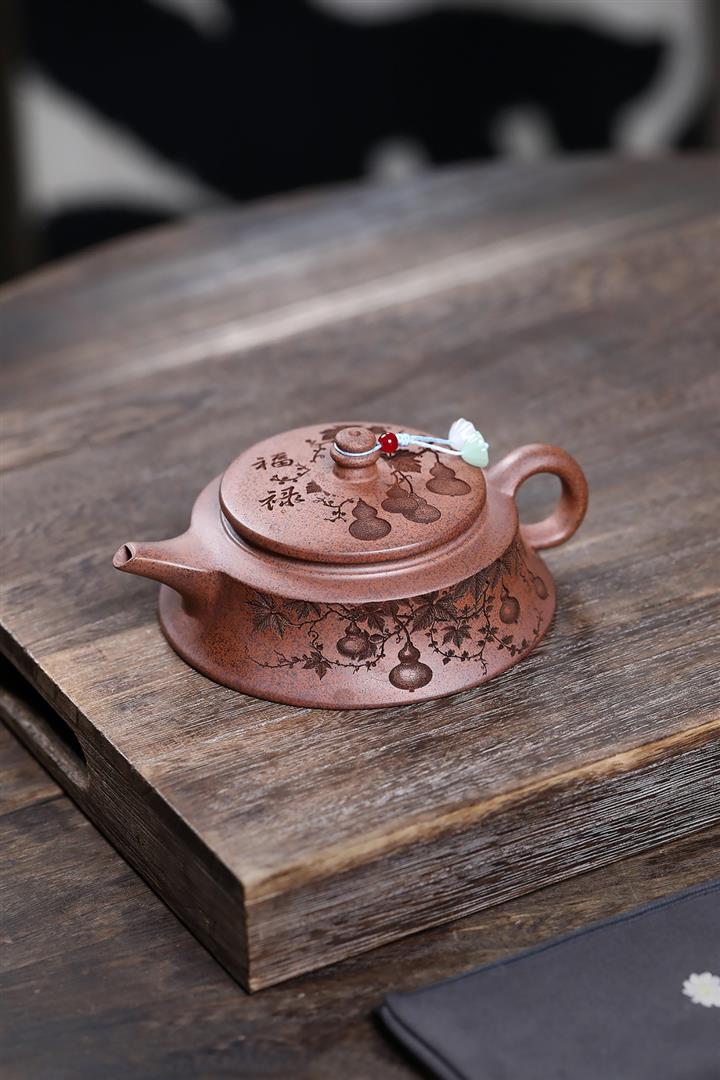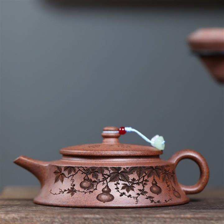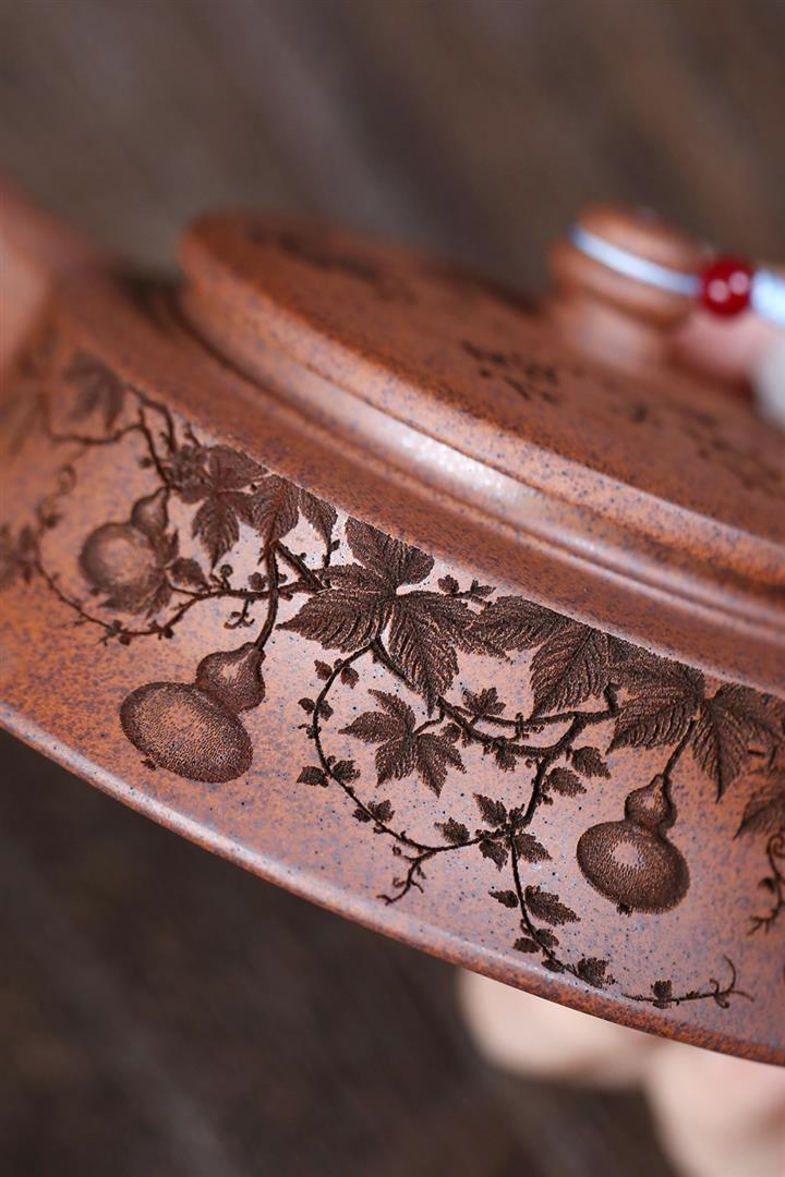 150cc原礦古紅泥茄瓜刻繪茶壺POT8360