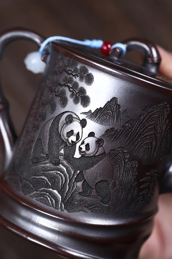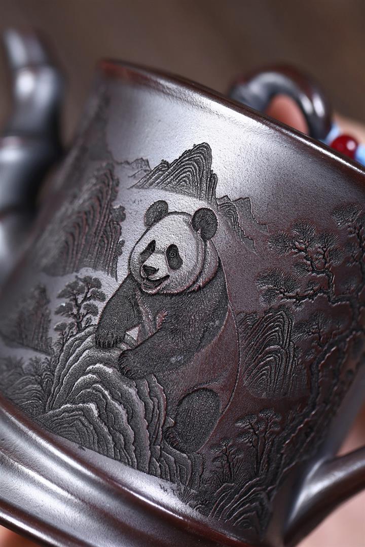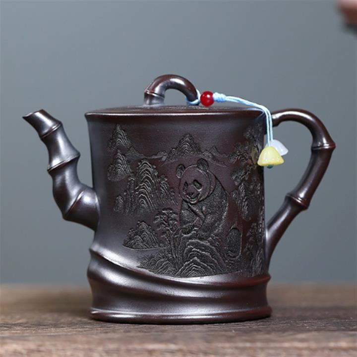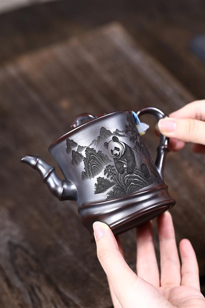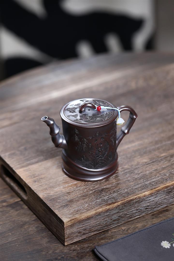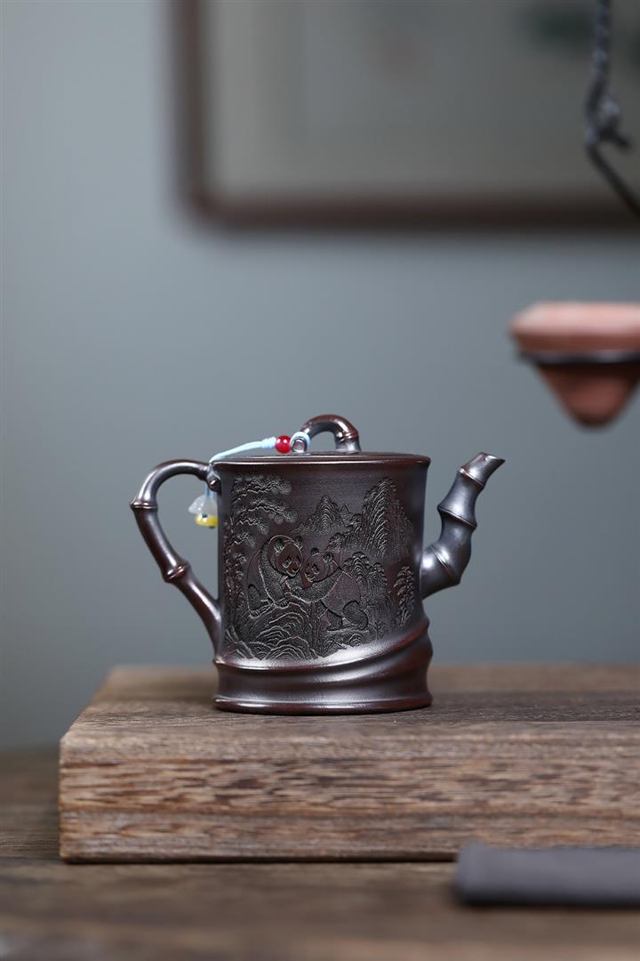 260cc原礦古烏泥滿刻竹影熊韻茶壺POT8181