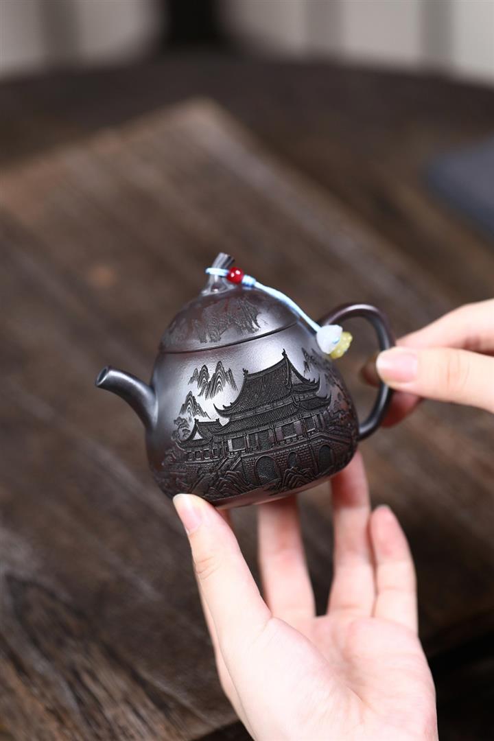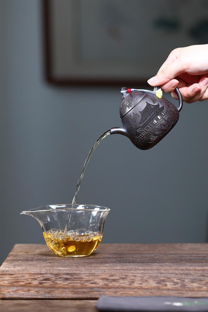 【作品介紹】此款壺形線條流暢,壺把,壺嘴,壺身壹氣呵成栩栩如生,是收藏把玩的好壺,泥料色澤古樸典雅,日久使用,漸露鋒芒,養成變化快,溫潤莊重,用其泡茶,使用的年代久,壺身就溫潤,泡出來的茶湯也就醇郁芳馨。