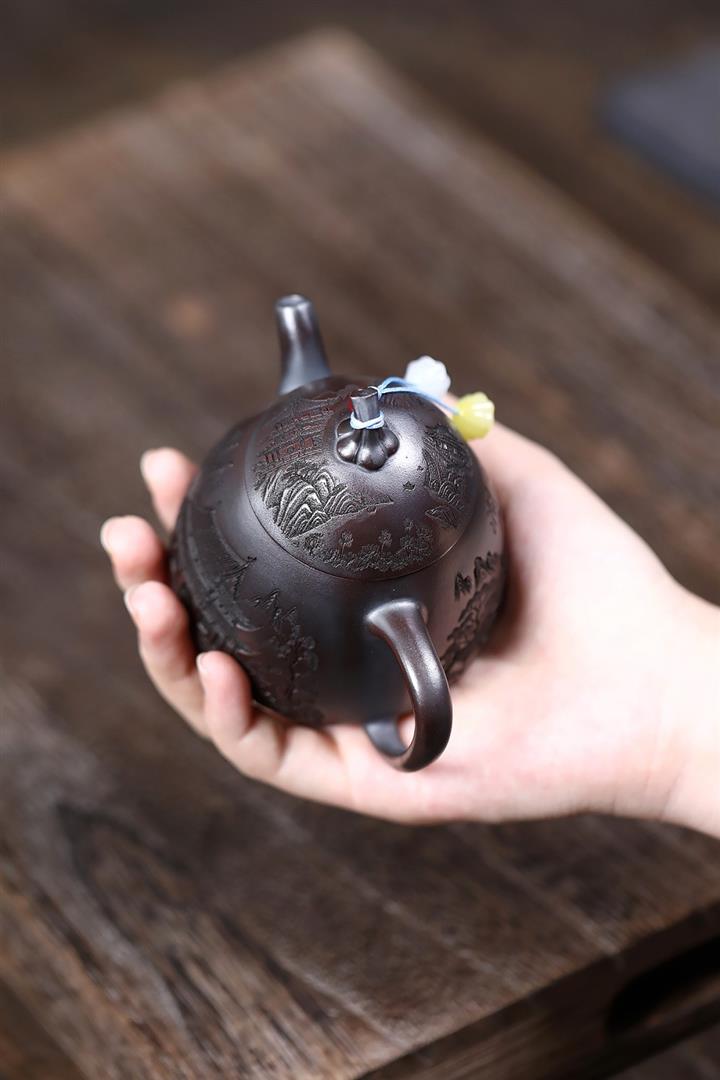 純手工紫砂壺原礦青砂段心經文旦POT4039