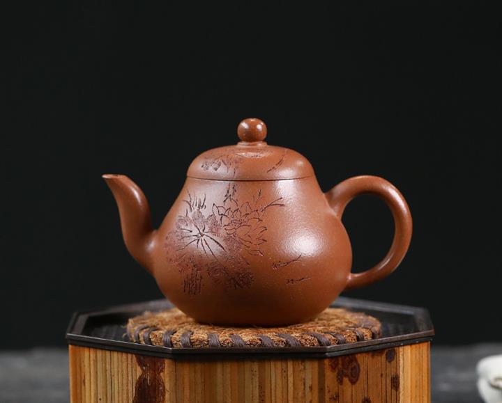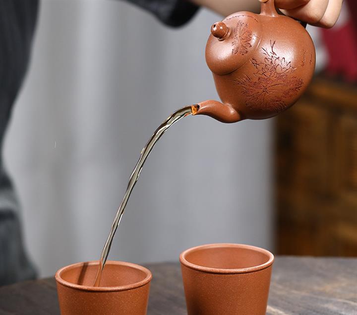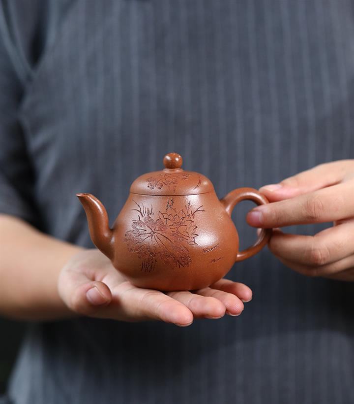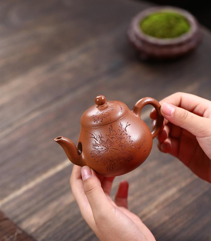 【泥料特點】砂土氣重,似淳實農民,日久使用,漸露鋒芒,養成變化,溫潤莊重。紫砂是壹種雙重氣孔結構的多孔性材質,氣孔微細,密度高。用紫砂壺沏茶,不失原味,且香不渙散,得茶之真香真味。紫砂使用越久,壺身色澤越發光亮照人,氣韻溫雅。紫砂壺長久使用器身會因撫摸擦拭,變得越發溫潤光澤。
