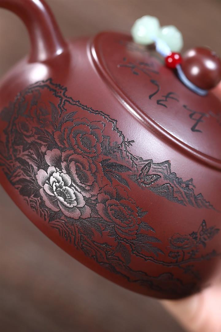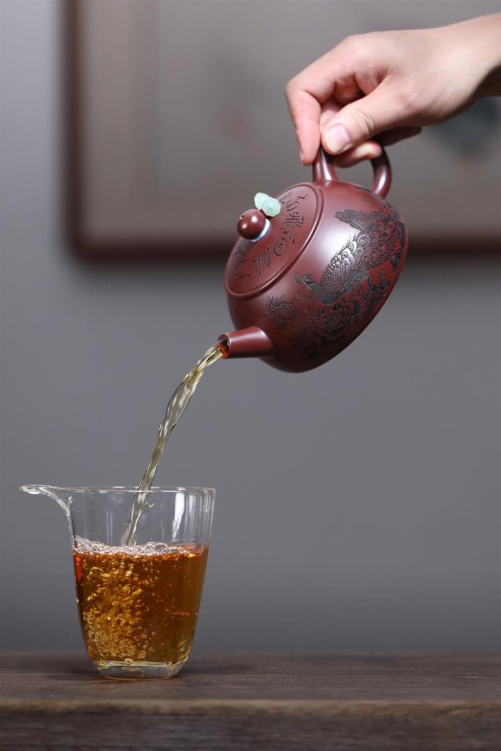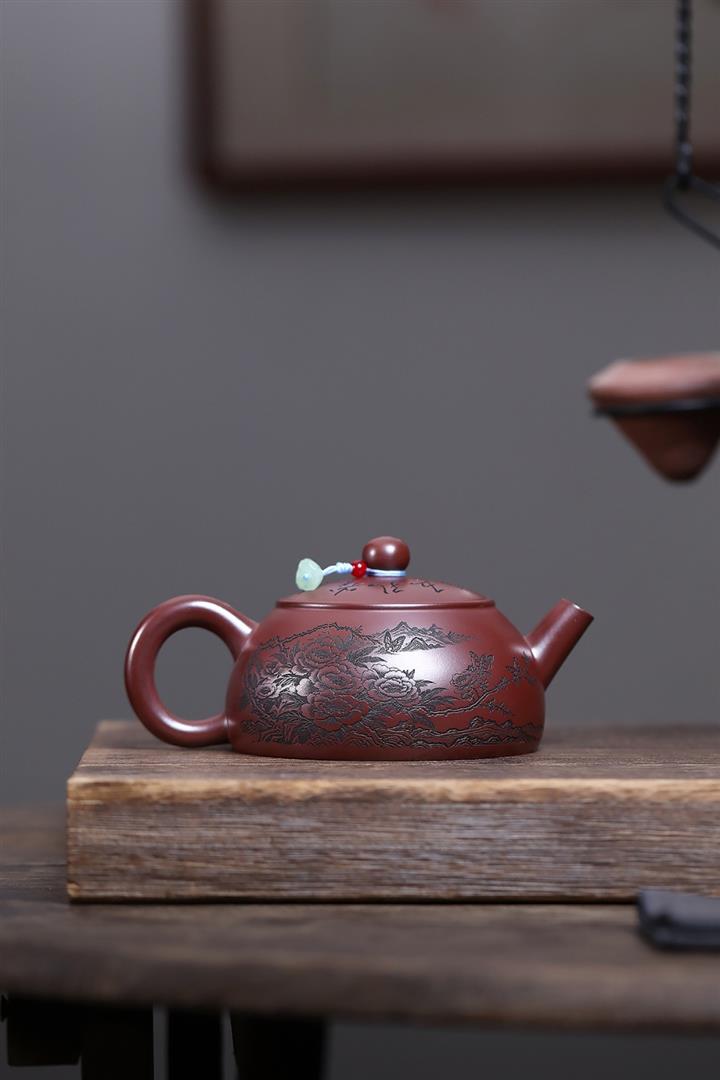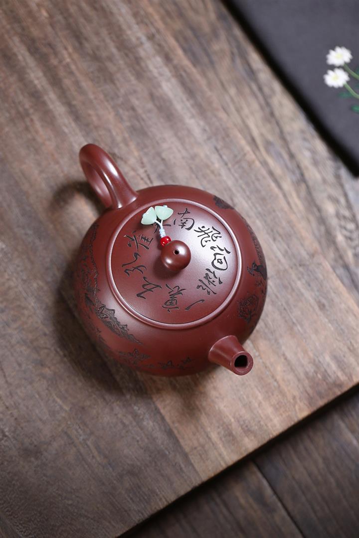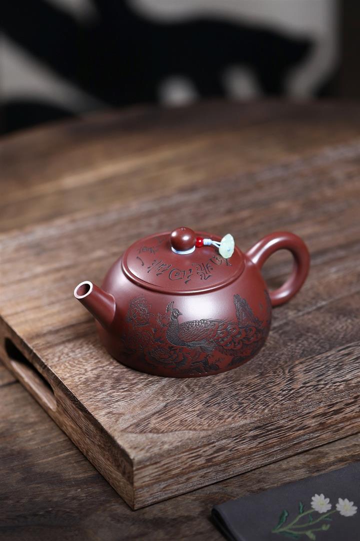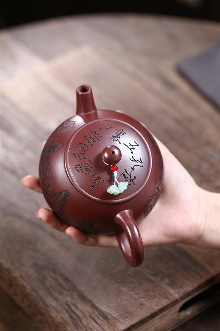300cc原礦古紅泥周盤魚化龍刻繪茶壺POT8362