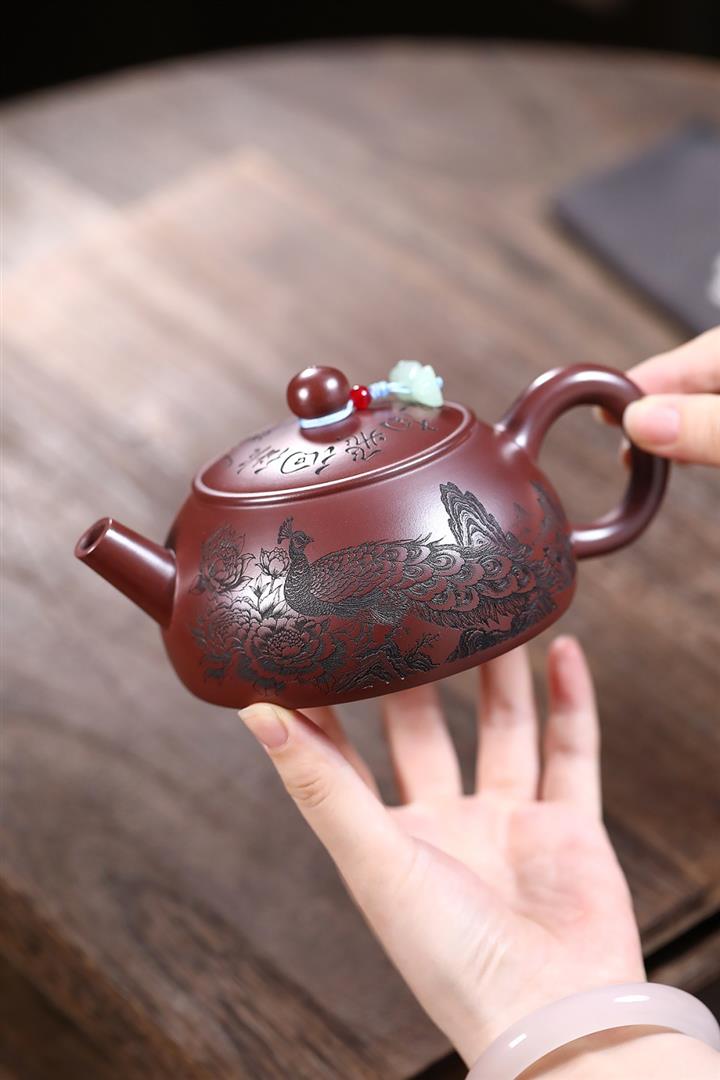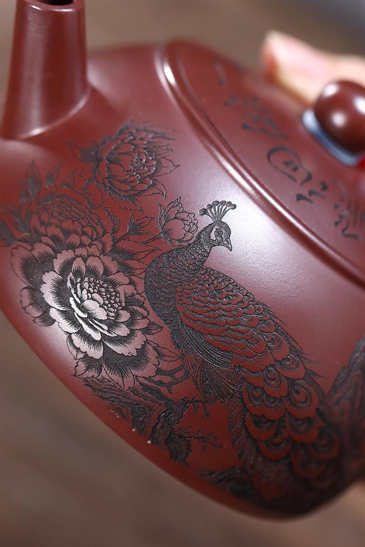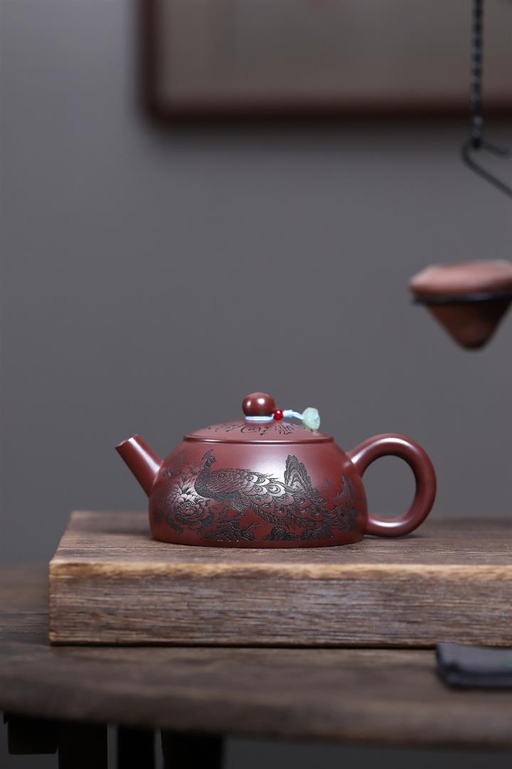 330cc原礦龍血砂孔雀振羽半月茶壺POT8196