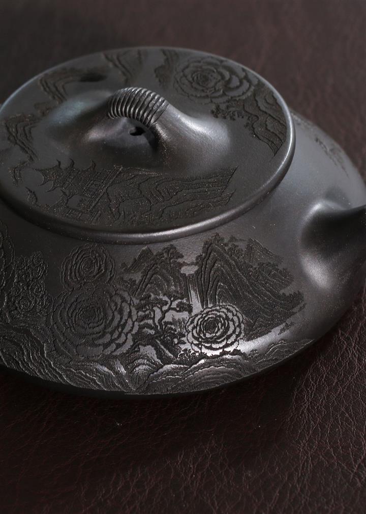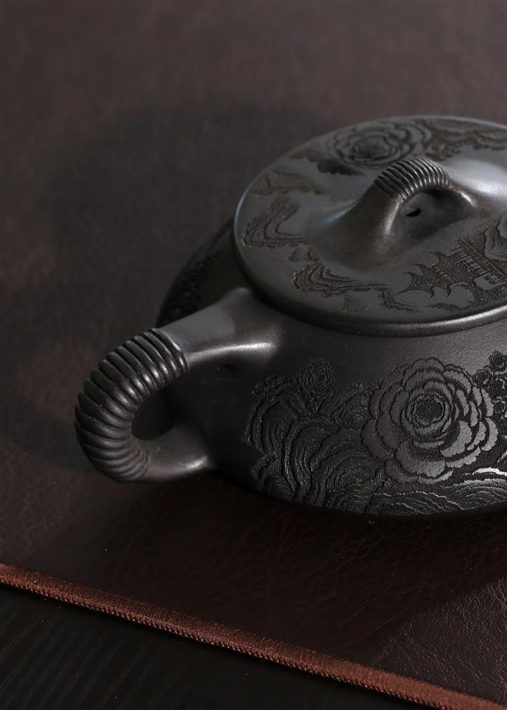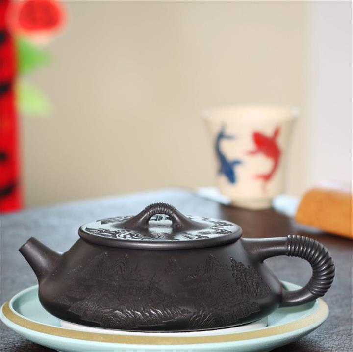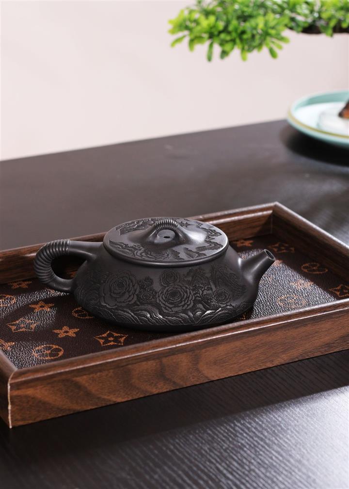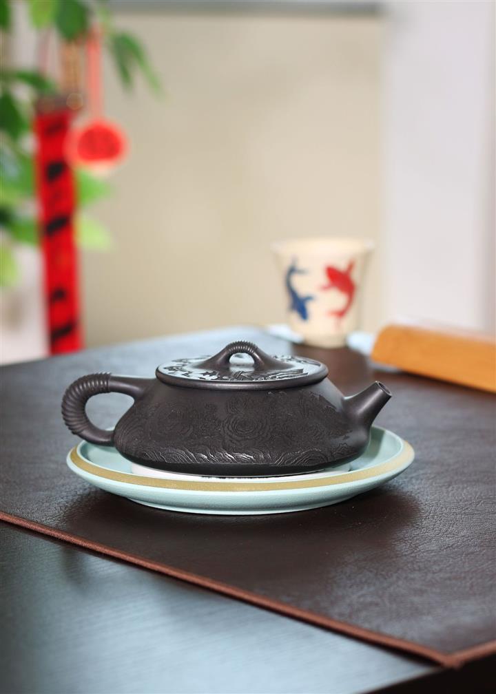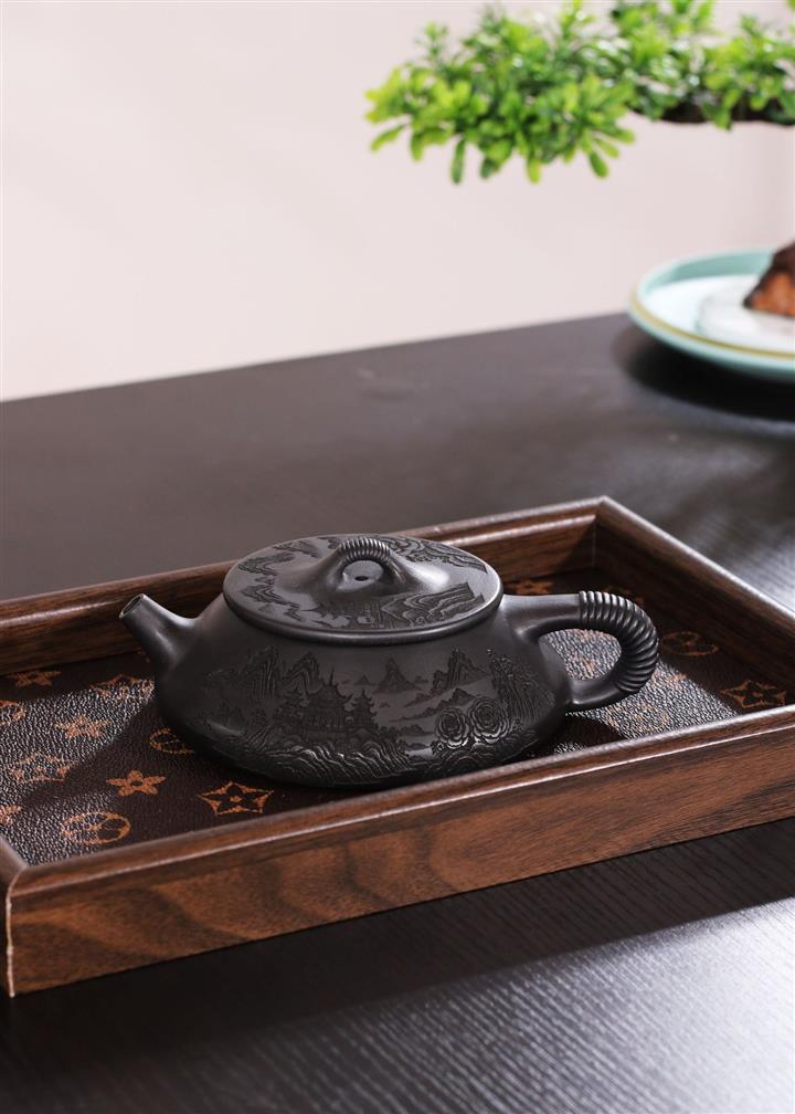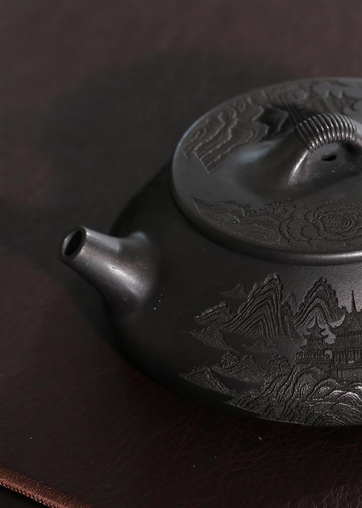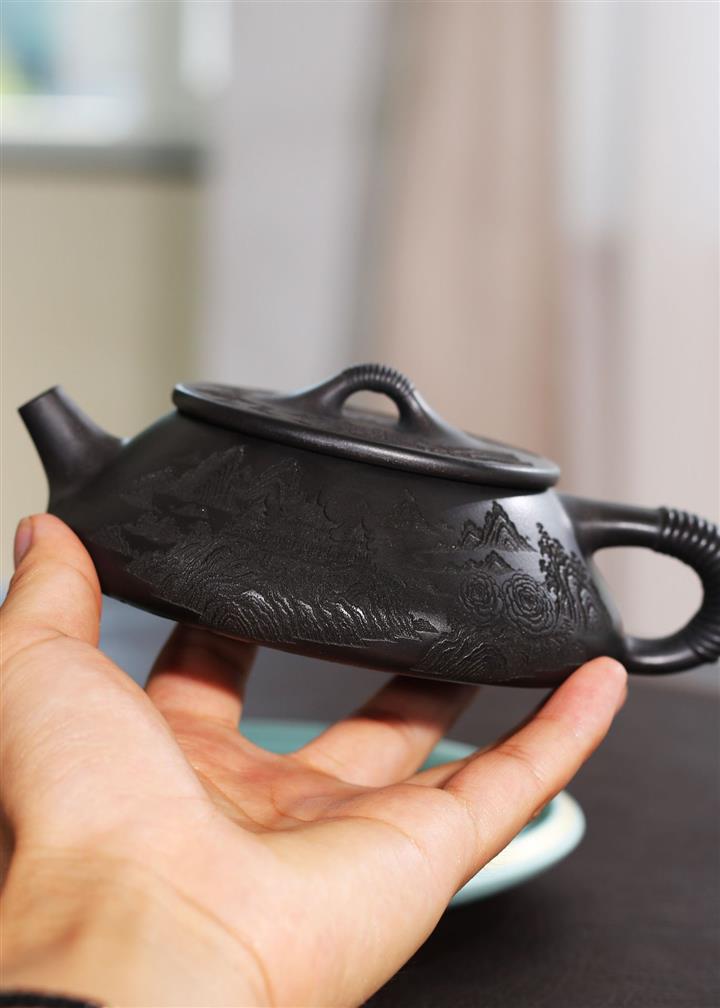 220cc玄鐵石黃黑料線瓢館藏茶壺POT8205