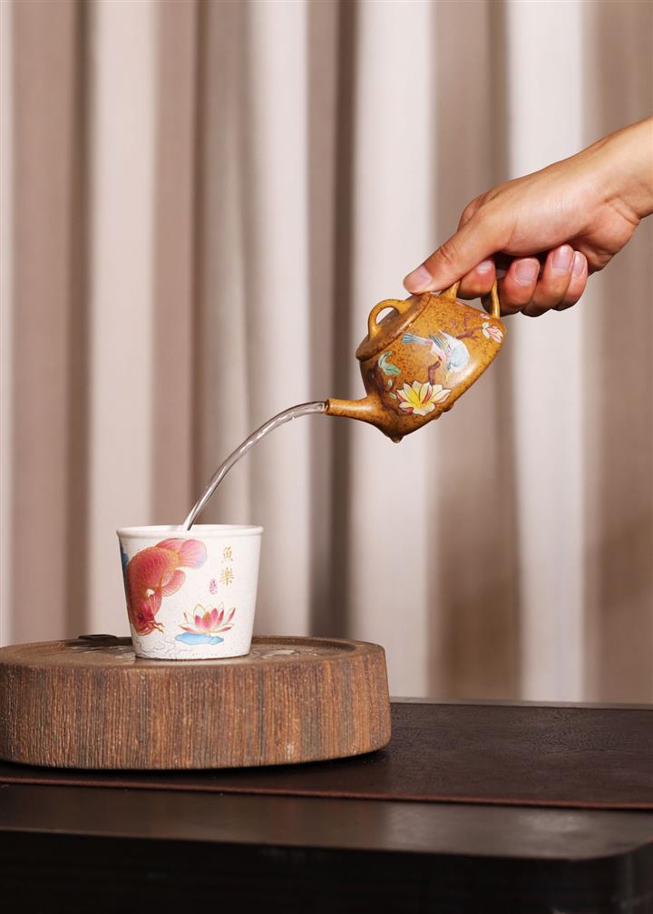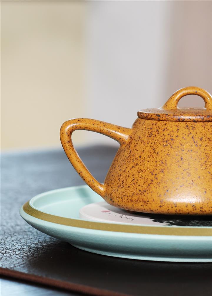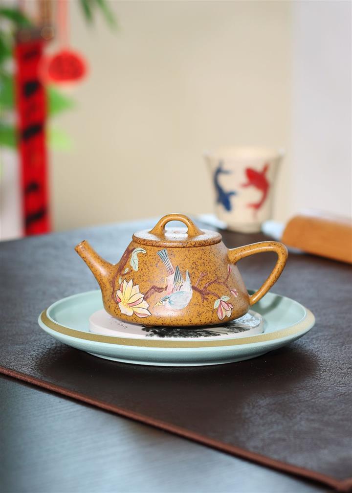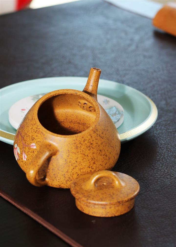 【泥料特點】砂土氣重,似淳實農民,日久使用,漸露鋒芒,養成變化,溫潤莊重。紫砂是壹種雙重氣孔結構的多孔性材質,氣孔微細,密度高。用紫砂壺沏茶,不失原味,且香不渙散,得茶之真香真味。紫砂使用越久,壺身色澤越發光亮照人,氣韻溫雅。紫砂壺長久使用器身會因撫摸擦拭,變得越發溫潤光澤。