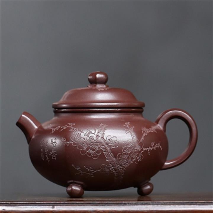 300cc原礦紫朱泥三足梅花泡茶壺POT8209