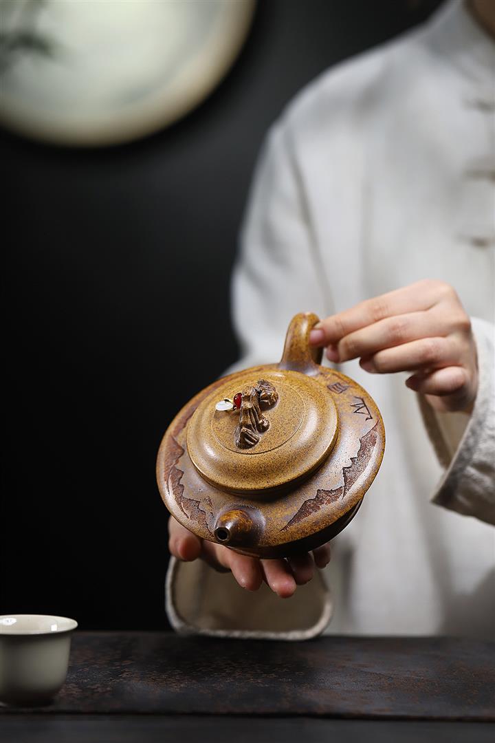 【泥料特點】砂土氣重,似淳實農民,日久使用,漸露鋒芒,養成變化,溫潤莊重。紫砂是壹種雙重氣孔結構的多孔性材質,氣孔微細,密度高。用紫砂壺沏茶,不失原味,且香不渙散,得茶之真香真味。紫砂使用越久,壺身色澤越發光亮照人,氣韻溫雅。紫砂壺長久使用器身會因撫摸擦拭,變得越發溫潤光澤。