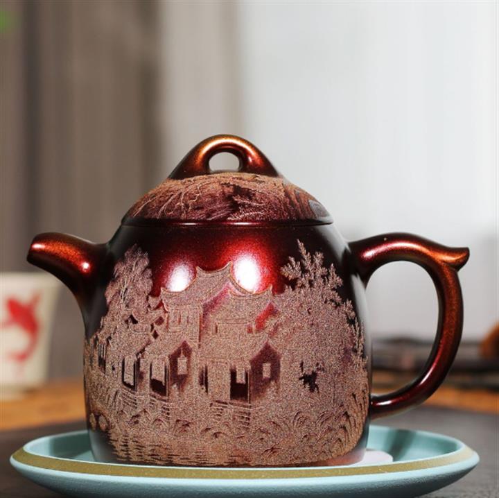 手工紫砂壺節日送禮活動禮品紫砂茶壺龍血砂仿古壺pot3752