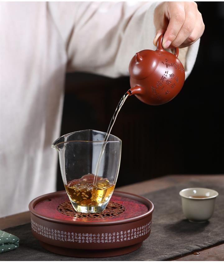 【泥料特點】砂土氣重,似淳實農民,日久使用,漸露鋒芒,養成變化,溫潤莊重。紫砂是壹種雙重氣孔結構的多孔性材質,氣孔微細,密度高。用紫砂壺沏茶,不失原味,且香不渙散,得茶之真香真味。紫砂使用越久,壺身色澤越發光亮照人,氣韻溫雅。紫砂壺長久使用器身會因撫摸擦拭,變得越發溫潤光澤。