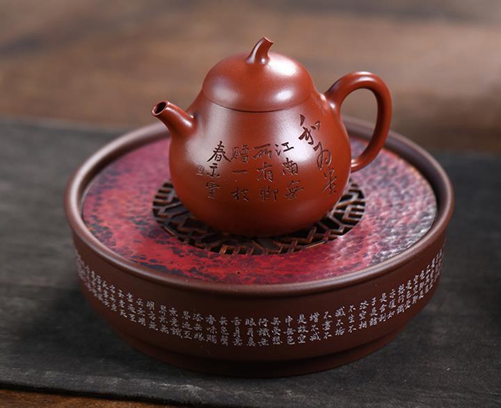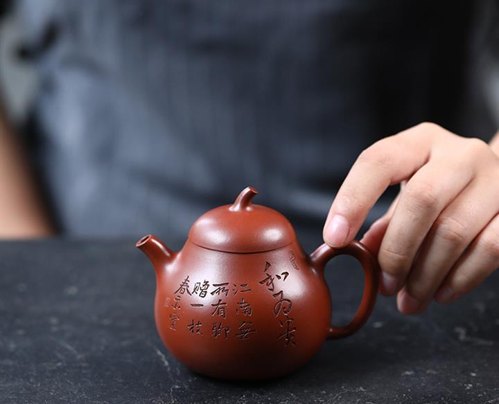 原礦赤金朱泥描金大漢瓦茶壺POT7180