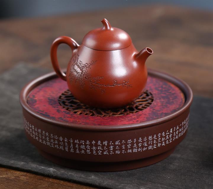 原礦粗砂朱泥金葉曼殊茶壺POT7183