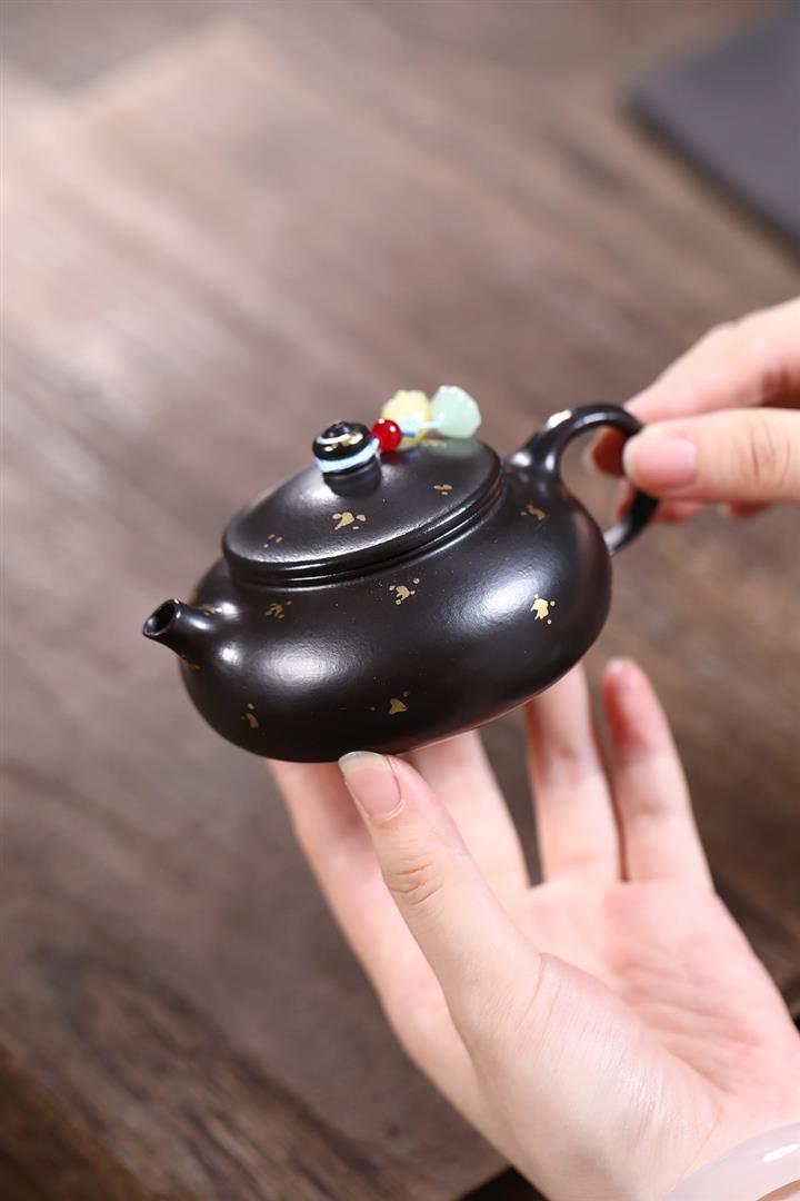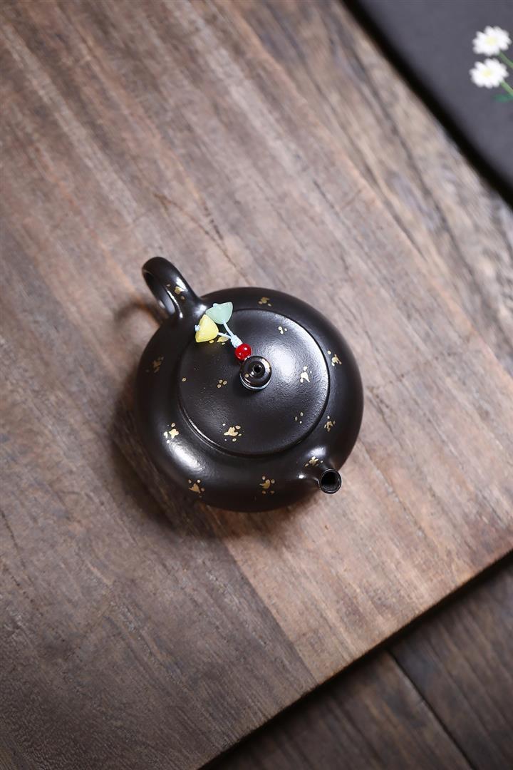 150cc原礦大紅袍焐灰灑金寒江茶壺POT8219
