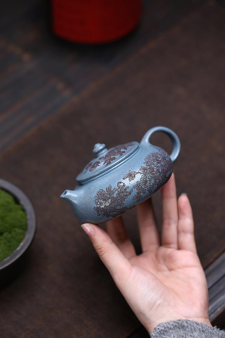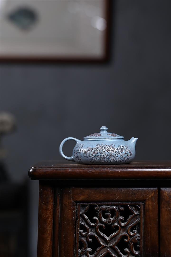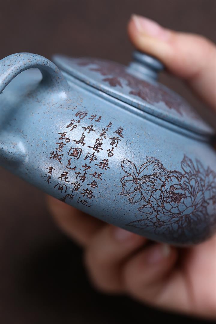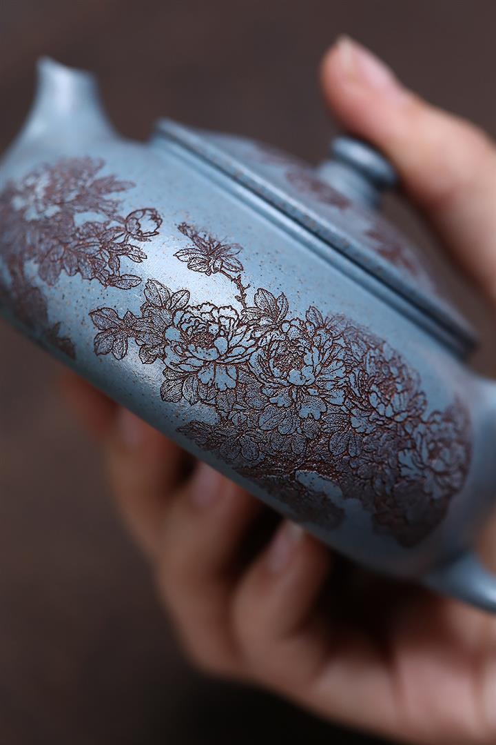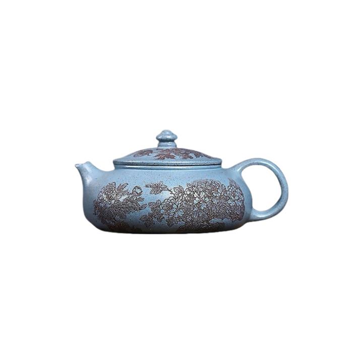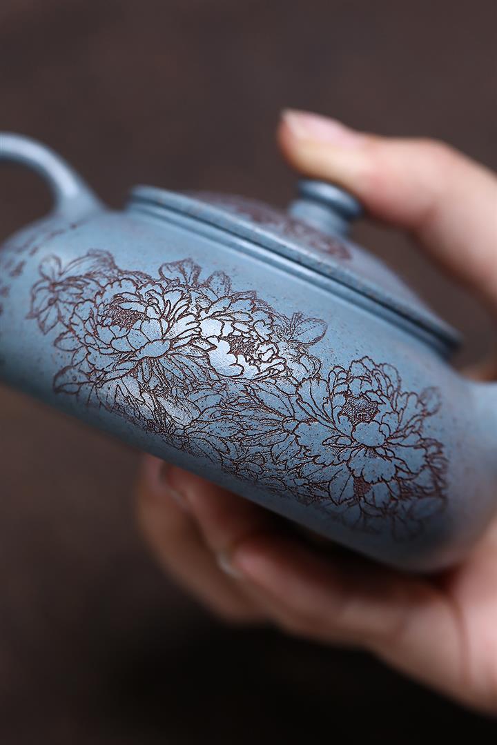 180cc原礦寶藍段泥刻繪牡丹茶壺POT8229