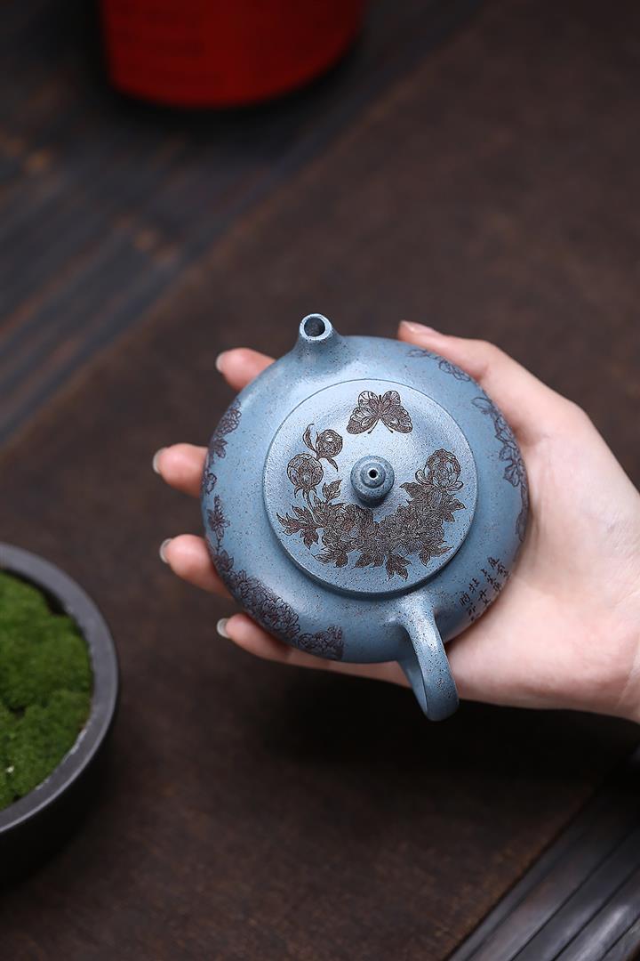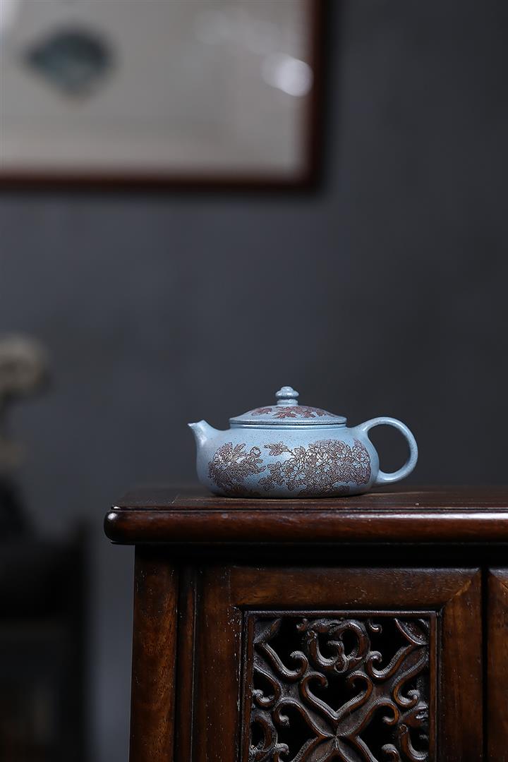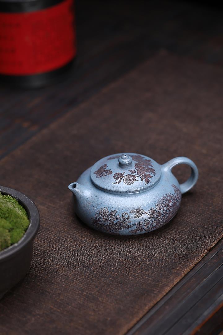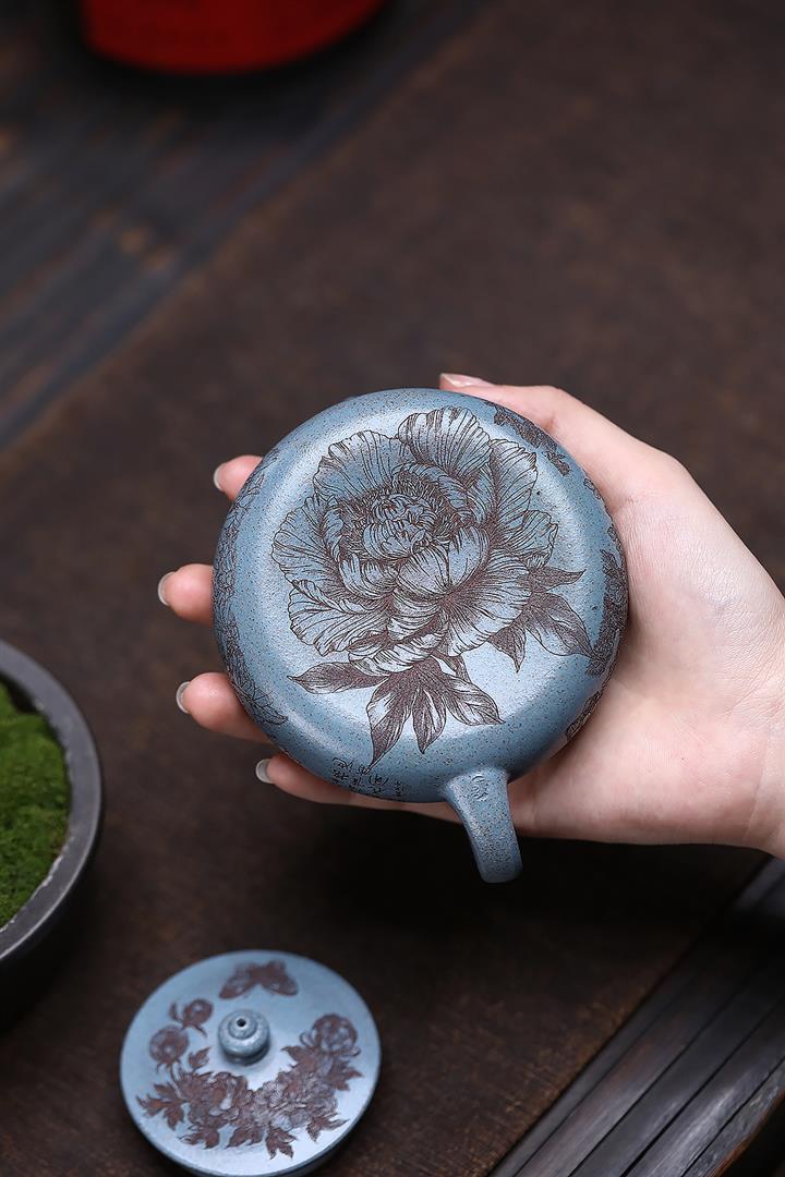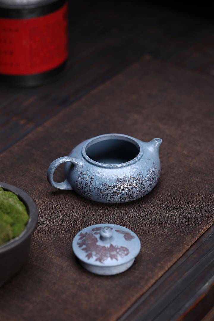 180cc原礦寶藍段泥刻繪牡丹茶壺POT8229