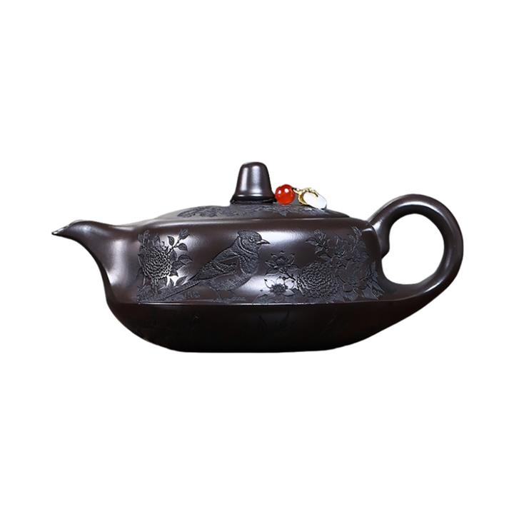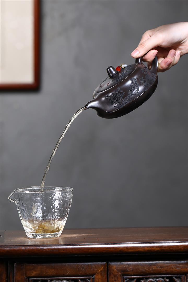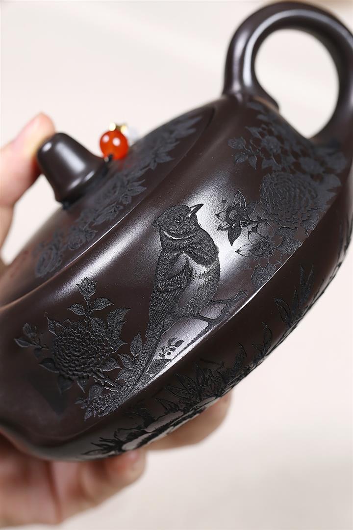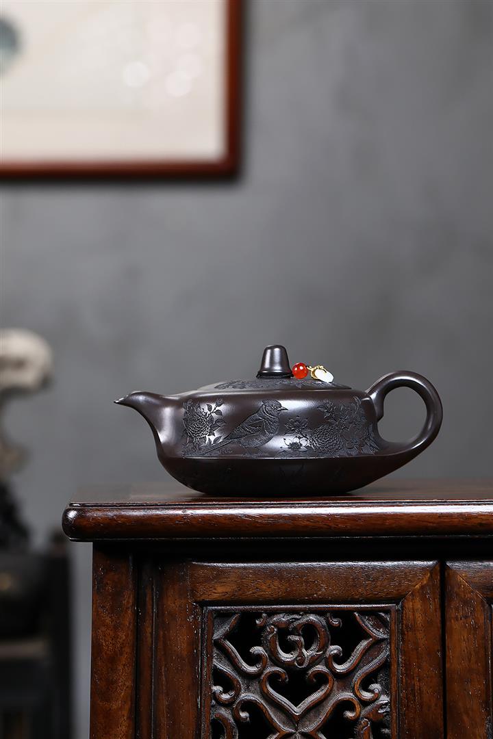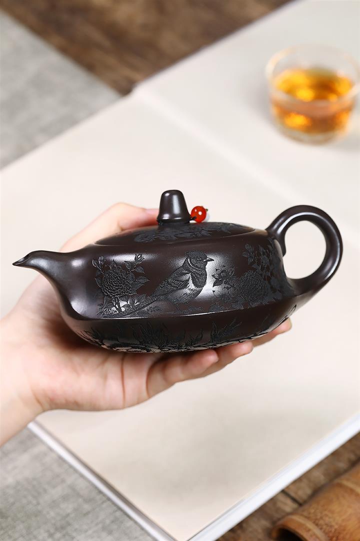 原礦家藏降坡泥滿刻牡丹容天茶壺POT7241