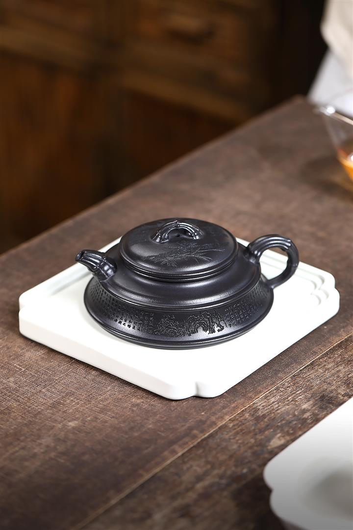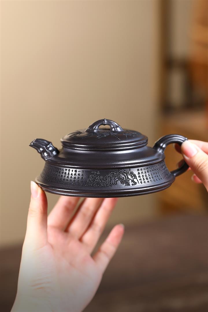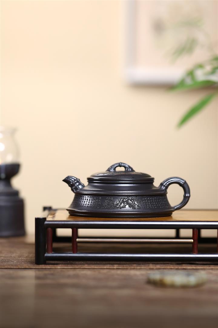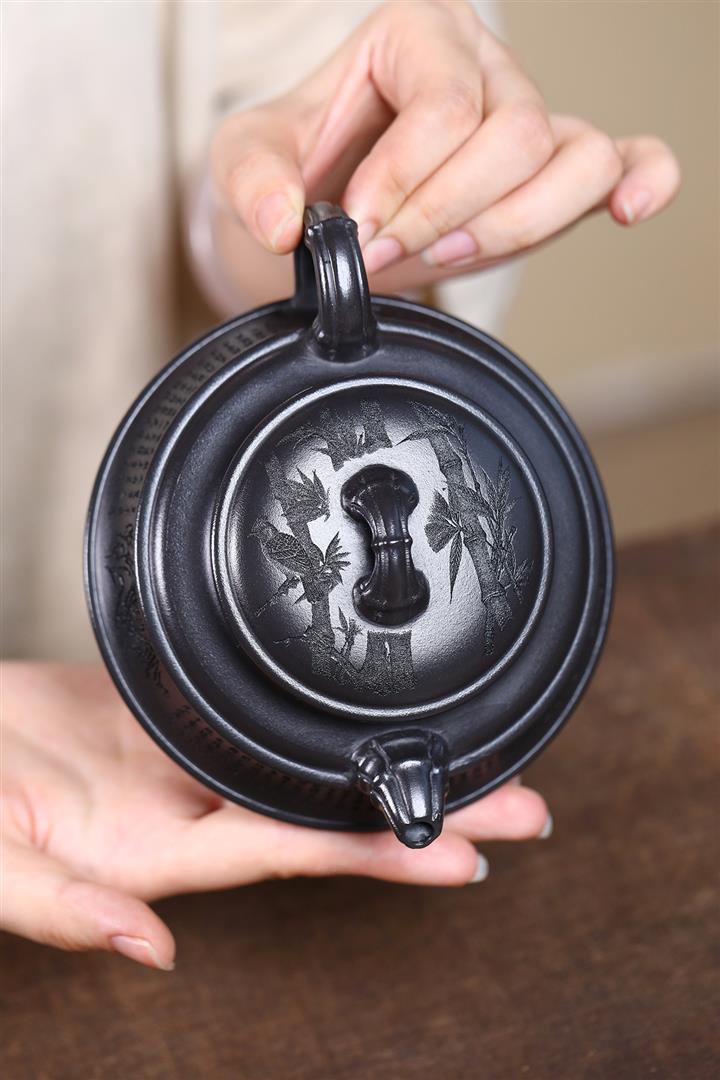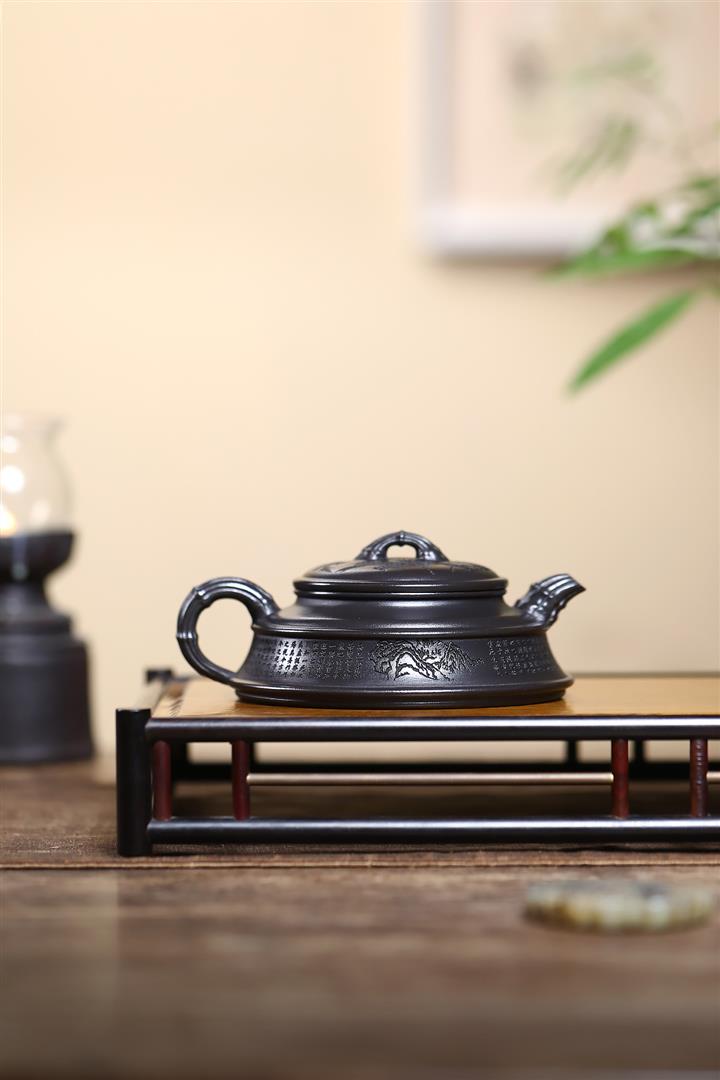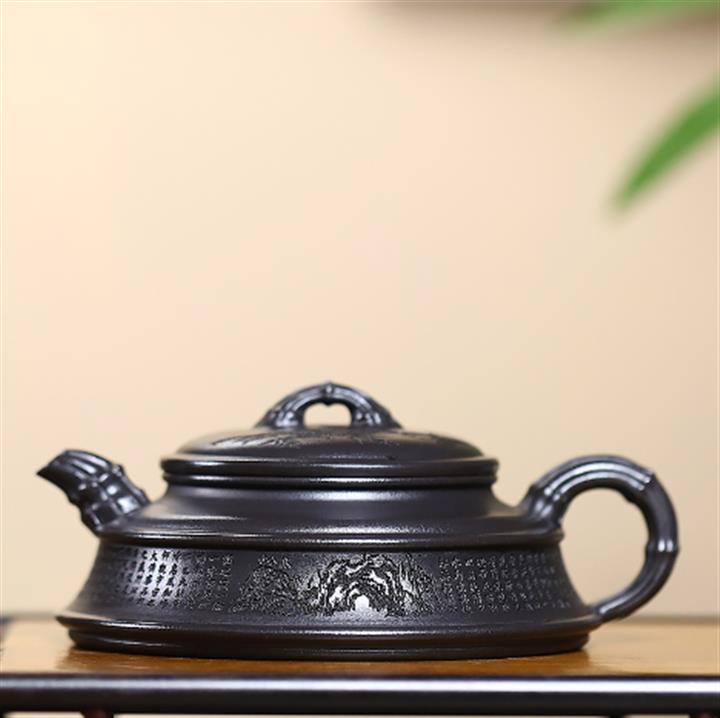 240cc玄鐵石黃雙線竹段蘭亭序集茶壺POT8271