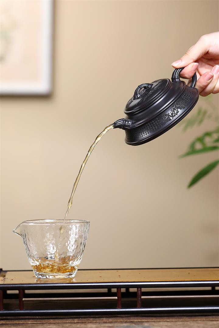 【作品介紹】此款壺形線條流暢,壺把,壺嘴,壺身壹氣呵成栩栩如生,是收藏把玩的好壺,泥料色澤古樸典雅,日久使用,漸露鋒芒,養成變化快,溫潤莊重,用其泡茶,使用的年代久,壺身就溫潤,泡出來的茶湯也就醇郁芳馨。
